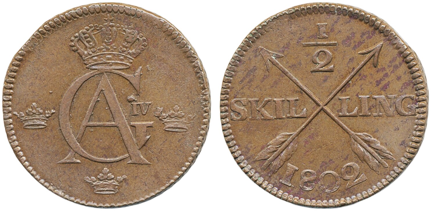 Coins, Sweden. Gustav IV Adolf, SM 49, ½ skilling 1802. 13.92 g. Avesta. 01.