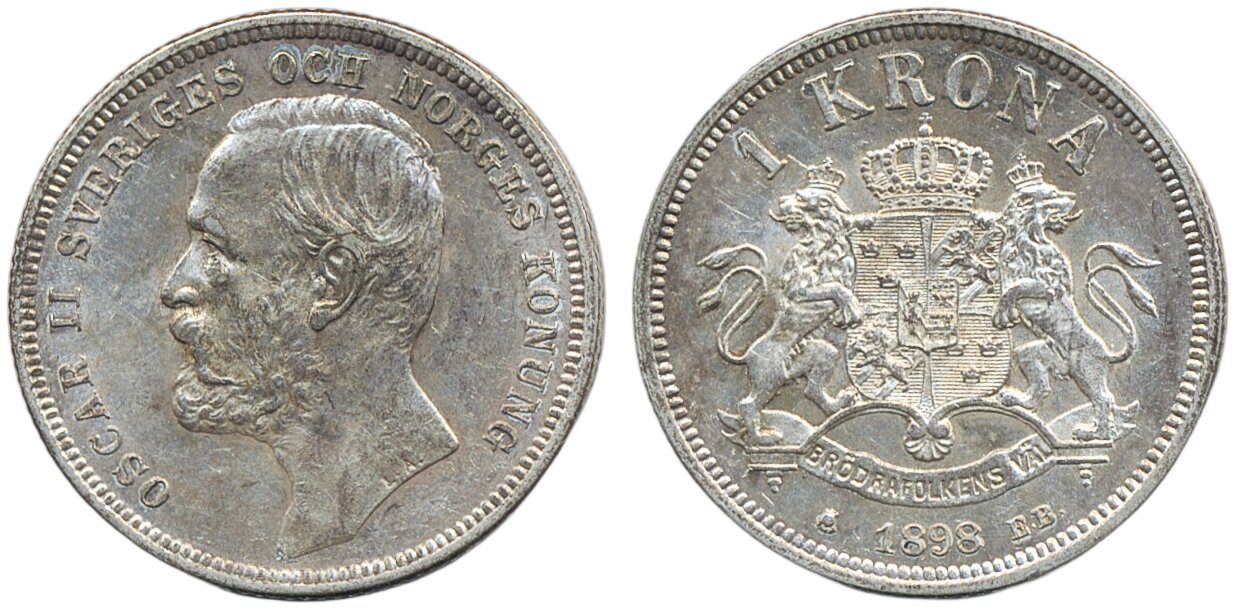 Coins, Sweden. Oskar II, SM 75, 1 krona 1898. 7.50 g. 01.