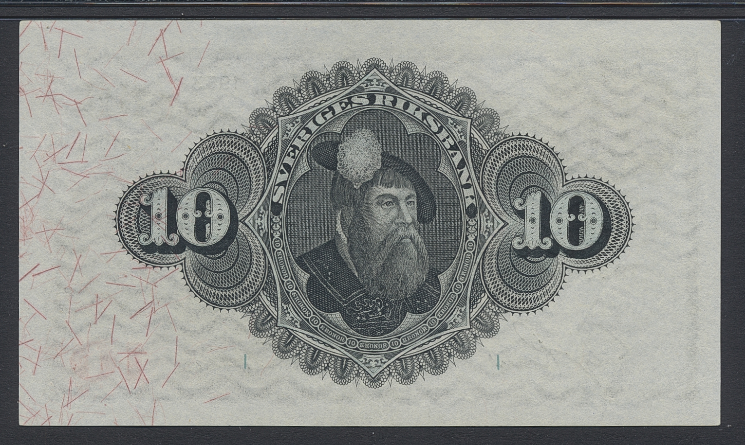 Banknotes, Sweden. SF R5:16, 10 kronor 1933. Z 191966. Graded by PMG as about uncirculated 55EPQ. Original paper with the lightest centre fold. Pick 34p. 01.