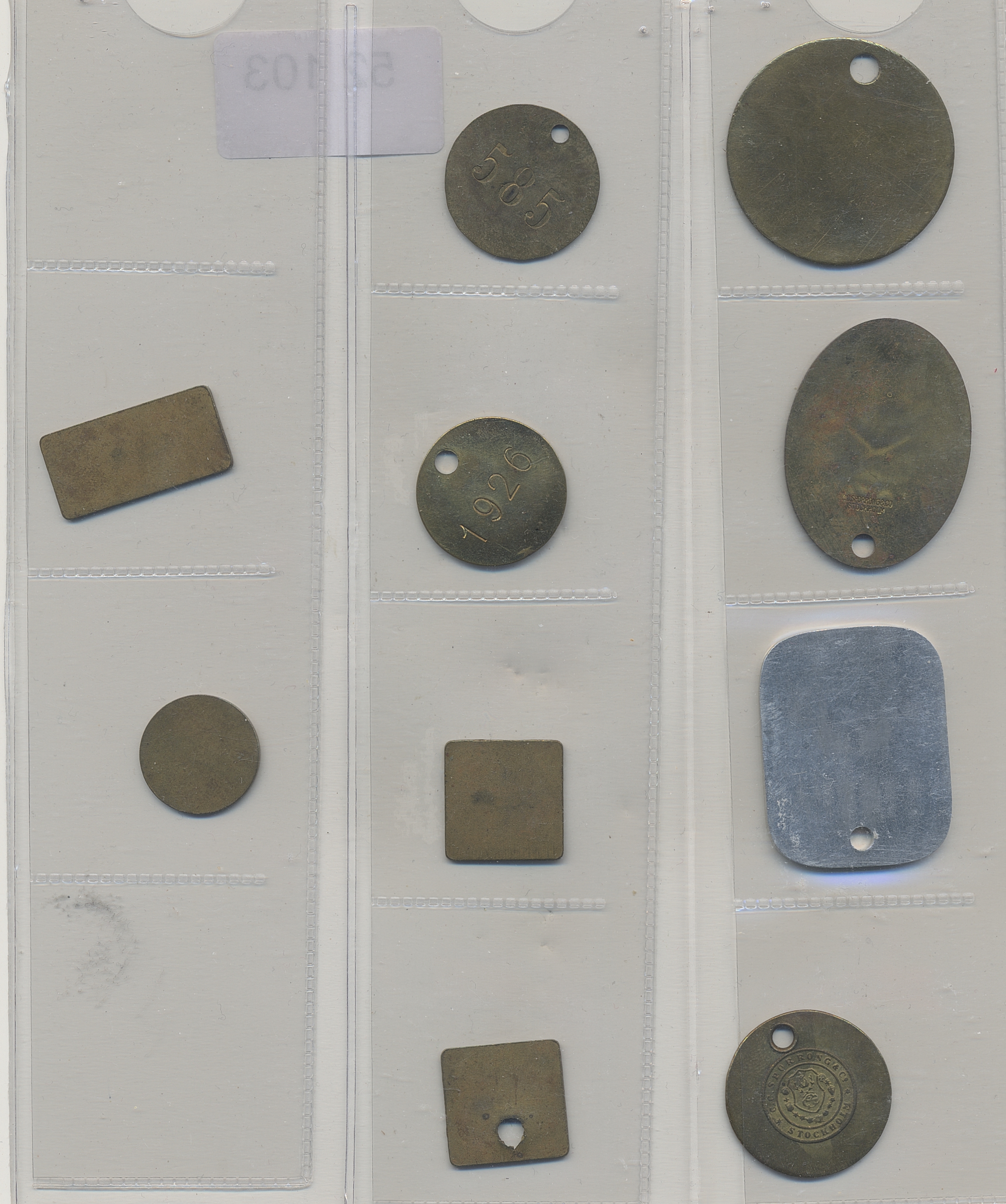 Tokens, Sweden. Lot. Mills. Iggesunds bruk (three), Forsså bruk (one), Ala sågverk (four) and Stocka sågverk (two). Ten ex. in total. The entire lot is presented at www.philea.se. 1+-01/0.