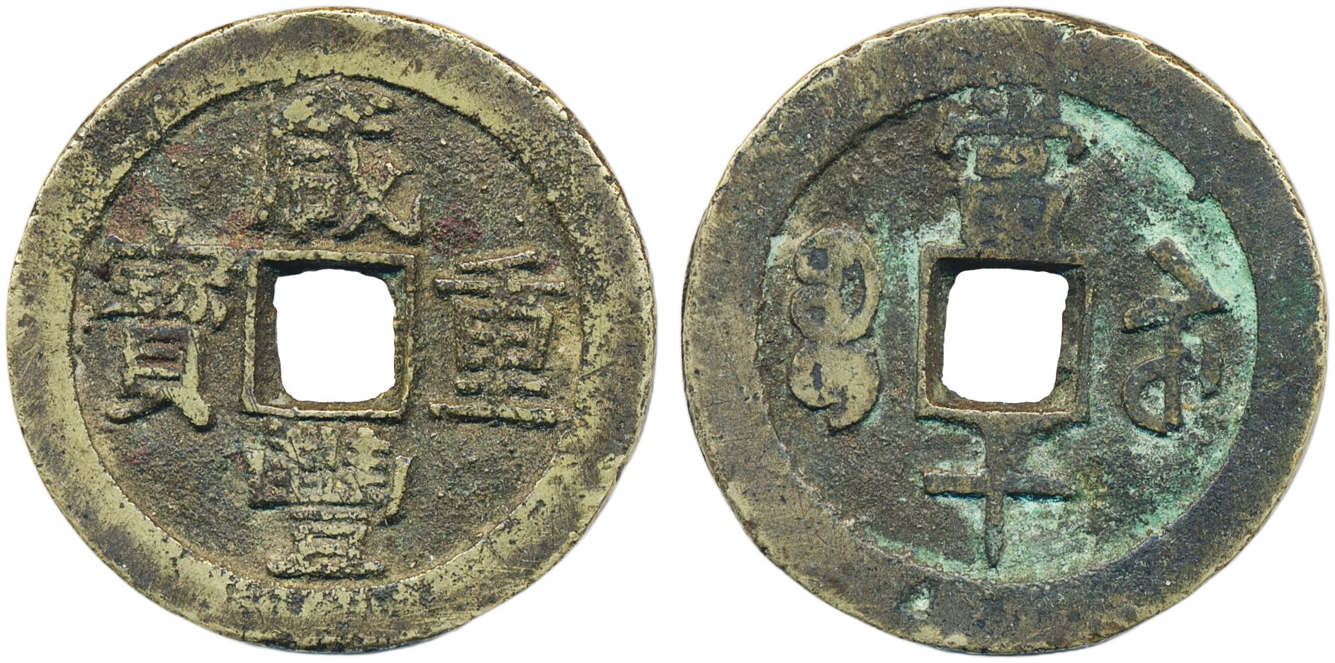 Coins, China. Emperor Wen Zong (1851-61), Hartill 22.891, 10 cash ND (1854–55). 27.02 g. 39 mm. Jiangsu Province, Suzhou and other mints. Reverse verdigris. From old Swedish source. F-VF.