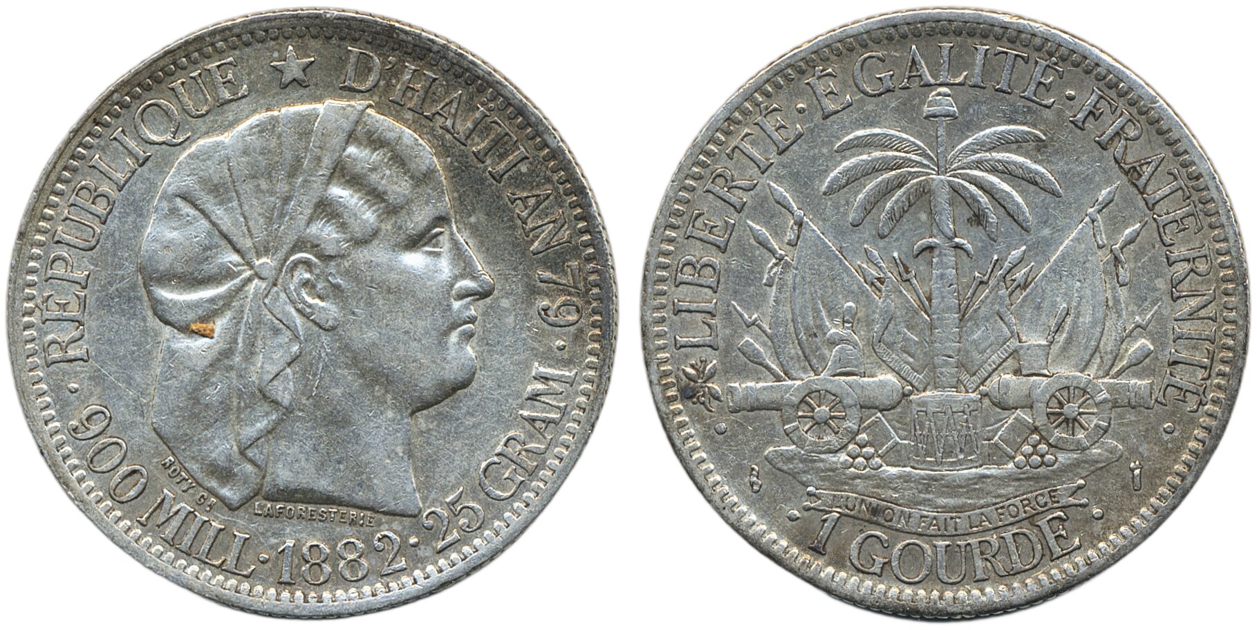Coins, Haiti. KM 46, 1 gourde 1882. Lightly cleaned. VF-XF.