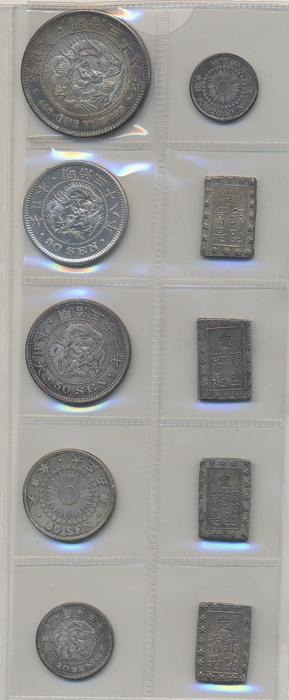 Coins, Japan. Collection of silver coins from Japan. In total ten pcs. Please inspect!