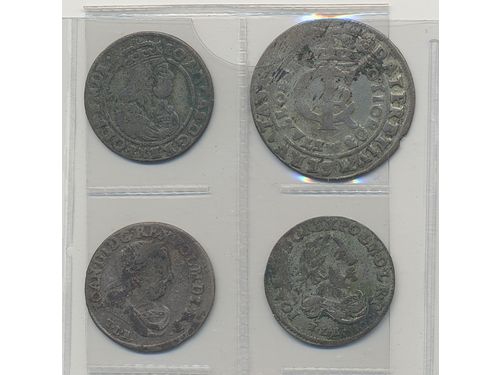 Coins, Poland. Small lot of four silver coins including Gulden 1666, 6 groschen 1665, 1682, 1683. Also seven coins of Saxony with Polish connection. Please inspect! VG-VF.