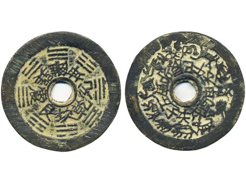 Coins, China. Wang Mang (7-23 AD), Hartill 9.30, ND (7–23 AD). 16.19 g. Spade money value 10. Reverse with an area of corrosion. VF. Show less