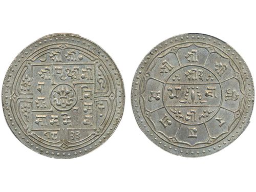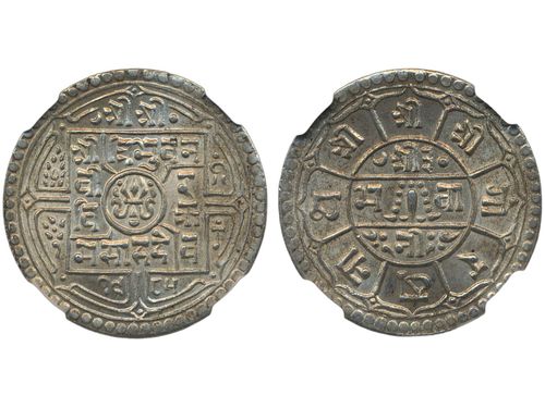 Coins, Nepal. Tribhuvana Bir Bikram (VS1968-2007/(1911-1950), KM 695, 2 mohars VS1986 (1929). Graded by NGC as MS66. UNC. See certification at NGC