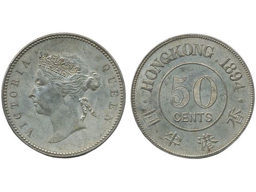 Coins, Hong Kong. Queen Victoria (1841-1901), KM 9.1, 50 cents 1894. Lightly toned with hints of lustre. XF. Show less