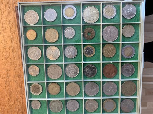 Coins, ALL WORLD. Box with four trays with coins in basic metals. Please inspect! The entire lot is presented at www.philea.se. Show less