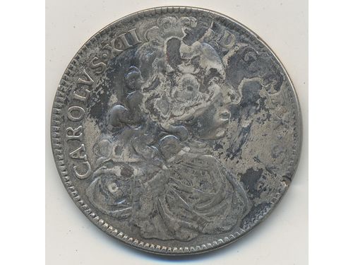 Coins, Sweden. Karl XII, SM 79, 1 mark 1697. 4.17 g. Stockholm. Corrosion. 1?/1. Show less