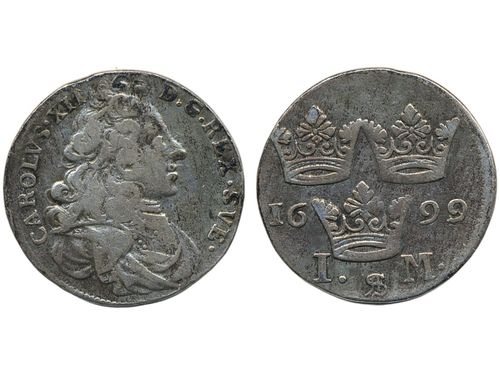 Coins, Swedish possessions, Riga. Karl XII, SB 118, 5 öre 1700. 3.37 g. Beauitful example with a high grade host coin of..