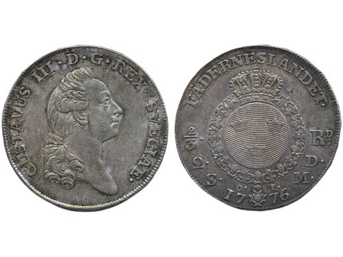 Coins, Sweden. Gustav III, SM 55, 2/3 riksdaler 1776. 19.52 g. Stockholm. Beautiful example with some lustre. 1+/01.