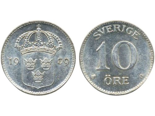 Coins, Sweden. Gustav V, MIS I.19a, 10 öre 1937. Graded by NGC as MS66. Only one finer graded by NGC. 0. See certification at NGC