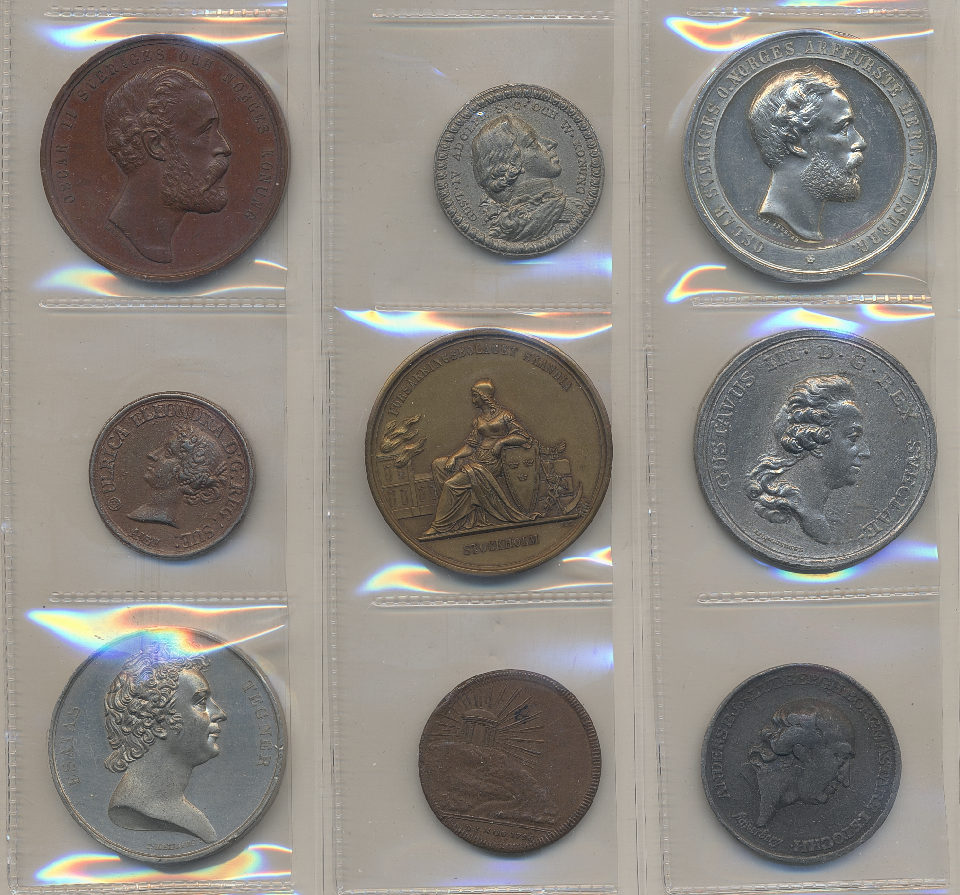 Medals, regal, Sweden. Lot. Twelve medals in different metals, e.g. Gustav III and Gustav IV Adolf. The entire lot is presented at www.philea.se.