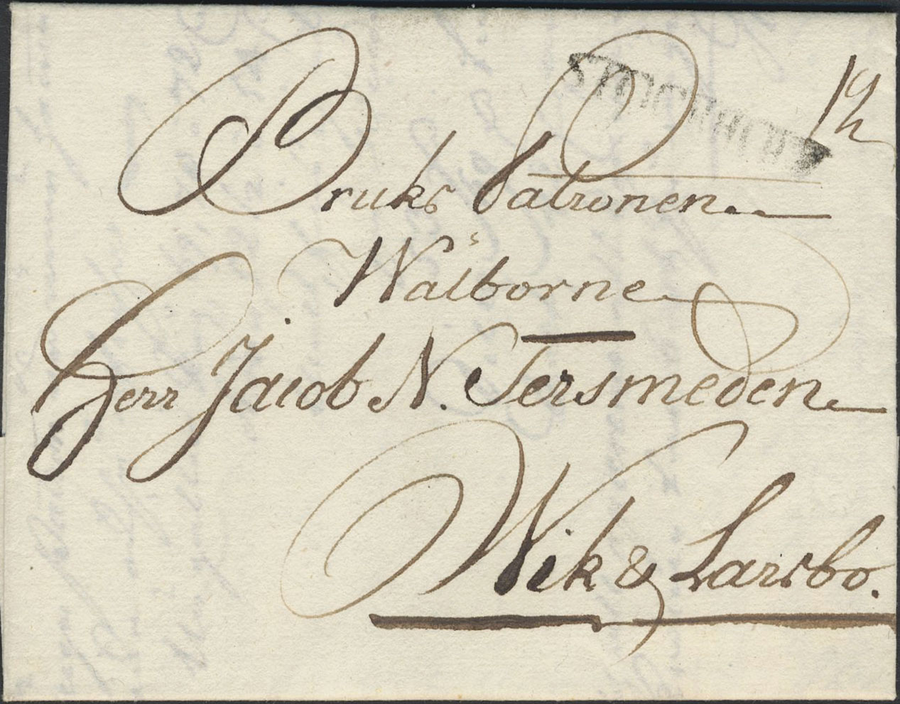 Sweden. A county. STOCKHOLM, straight postmark. Type 8 on letter dated '15: Junii 1789' sent to Wik. Postal: 6000:-