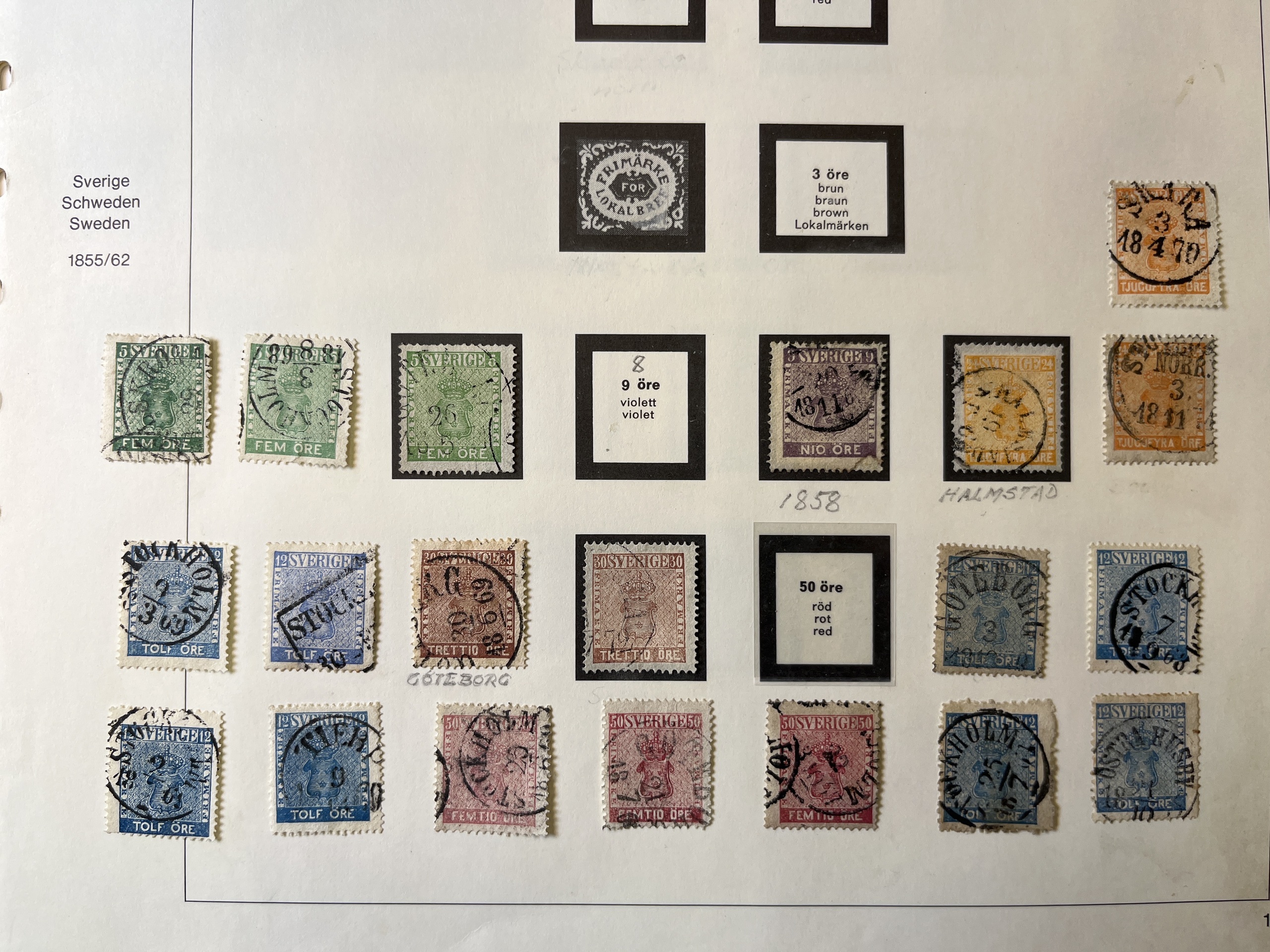 Sweden. Collection mostly used 1858–Coil Stamps on leaves. Most Coat-of-Arms öre, Circle type and Coil stamps in shades, papers, watermarks etc. Please see a selection of scans at www.philea.se.