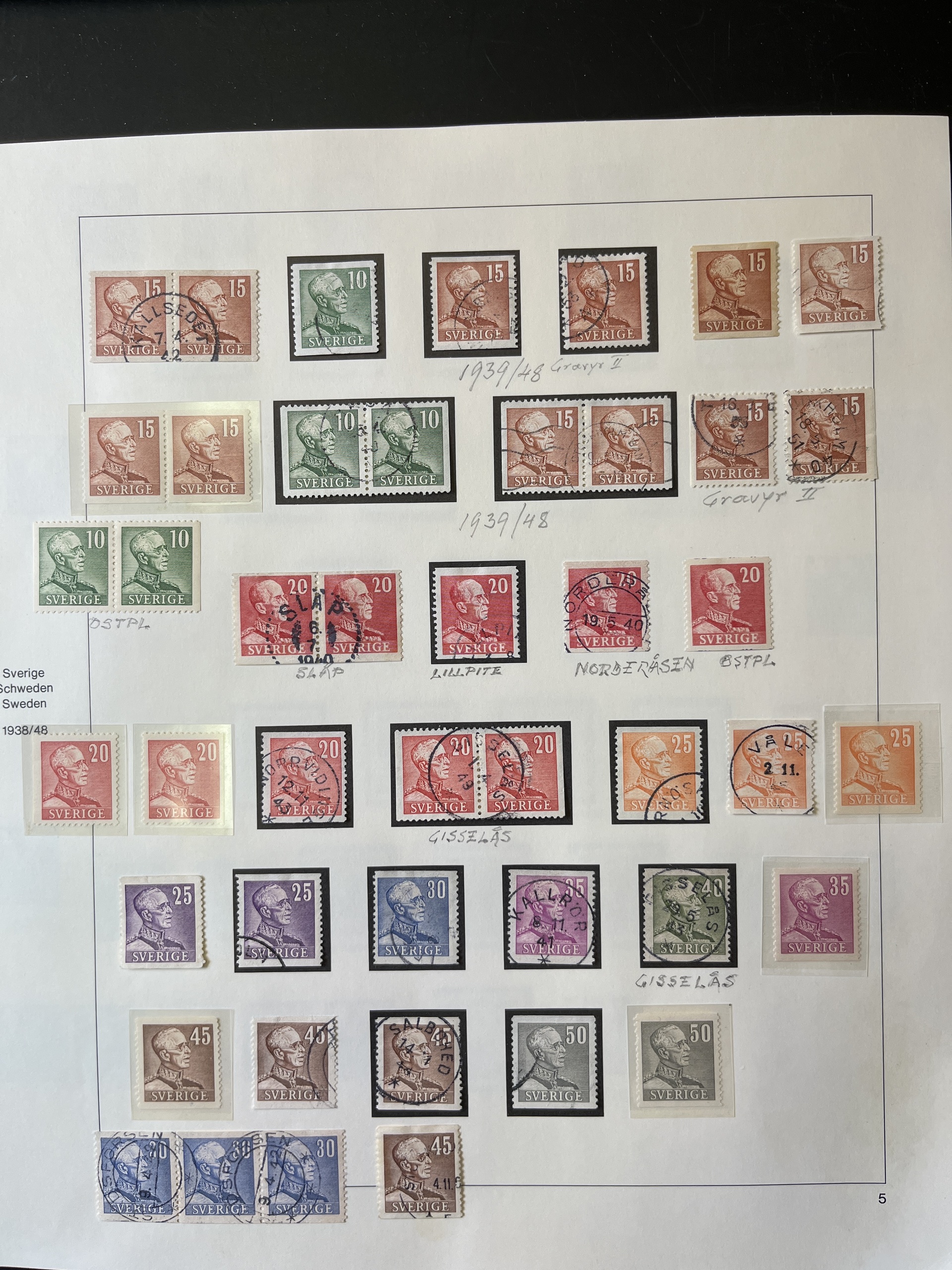 Sweden. Collection ★★/★/⊙ 1924–59 on leaves. Rich collection starts with 1924 year sets compl. 5 öre - 5 kr, many BC/CB-pairs.