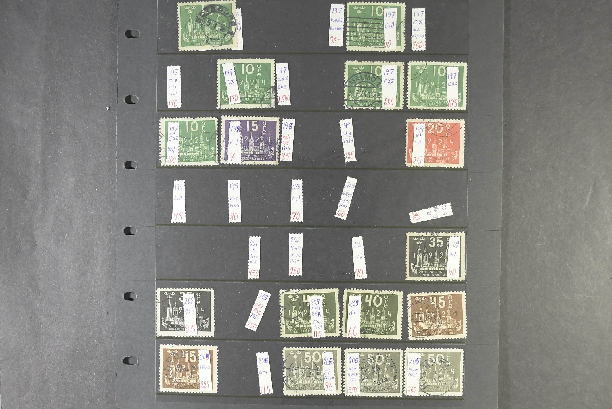 Sweden. Collection ★★/★/⊙ 1924 on visir leaves. Duplicate lot incl. e.g. 9×F208, 6×209, 4×223 and 6×224. Ex. Contenta. Somewhat mixed quality. (240)