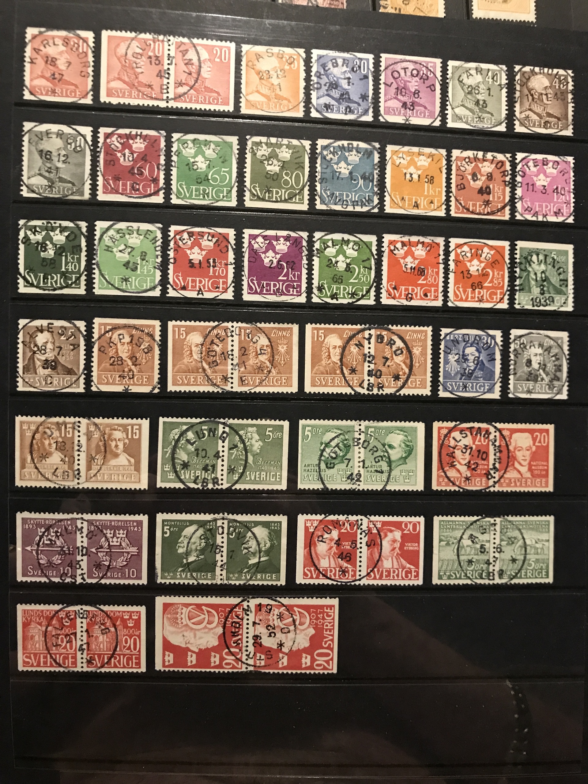 Sweden. Cancellations. Very beautiful selection 188 different 4 skill–1947 incl. better stamps and 15 pair combinations. All with superb–excellent cancellations. The entire lot is presented at www.philea.se.