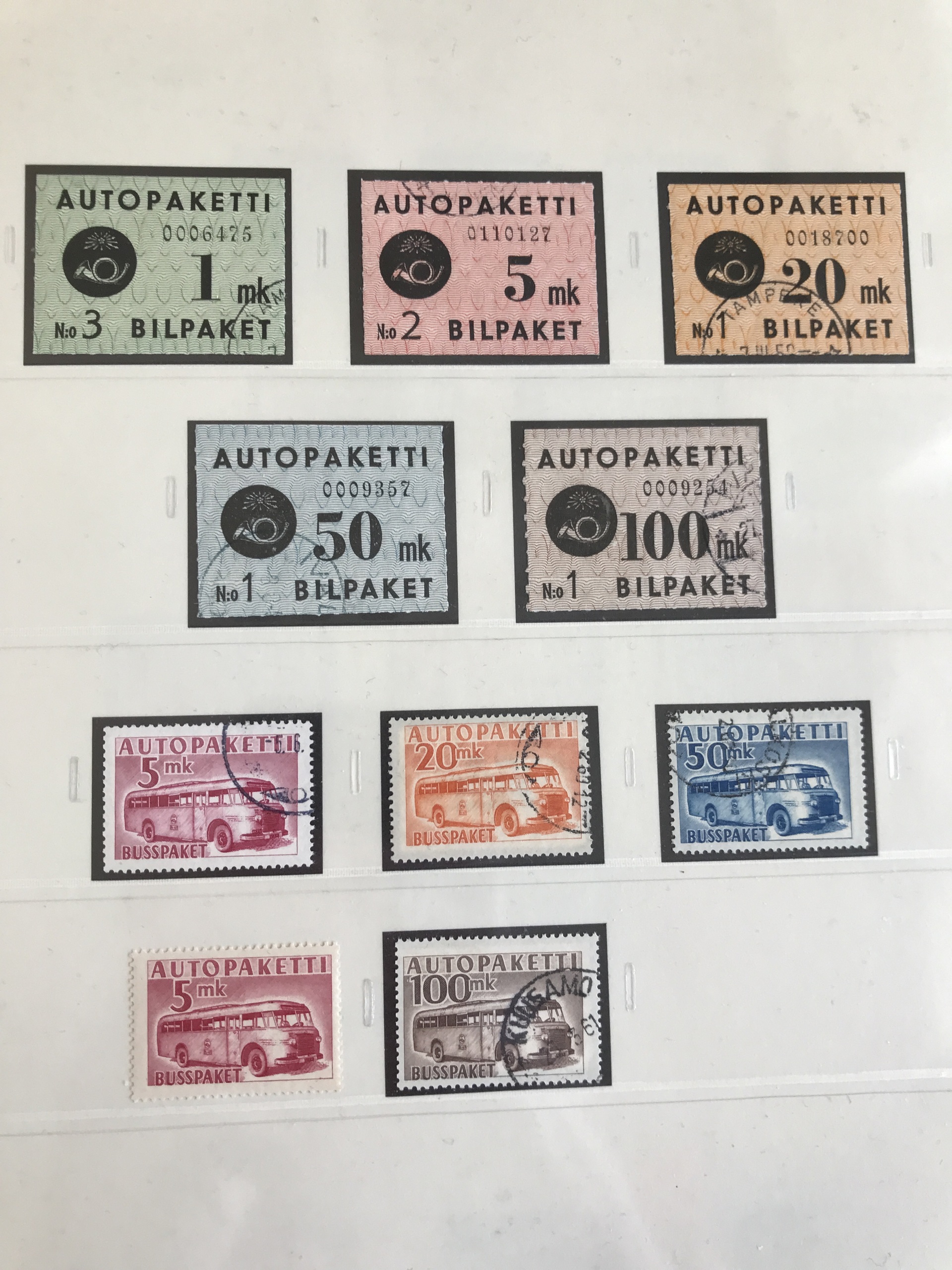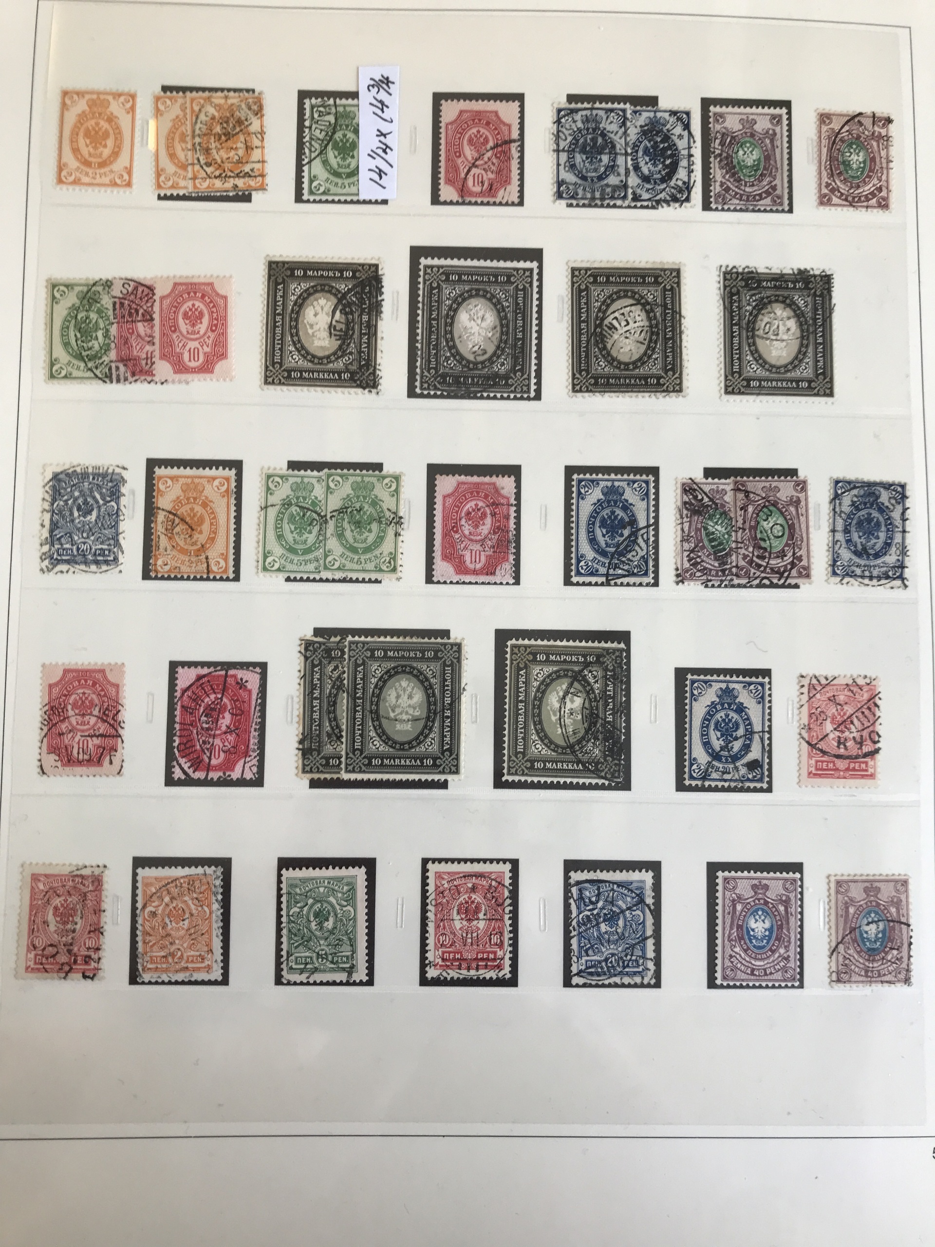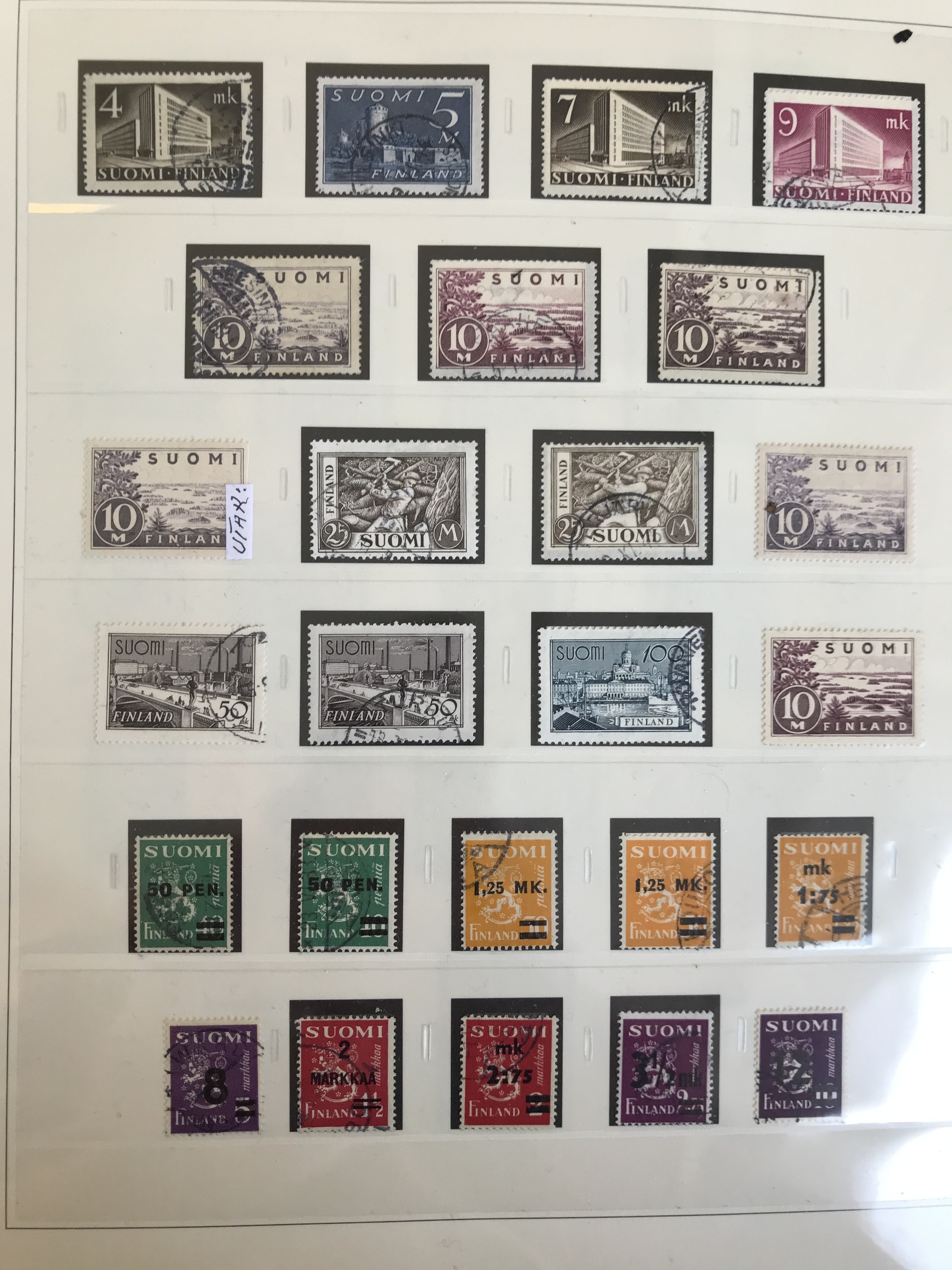 Finland. Mostly used. Comprehensive collection 1856-1993 in two SAFE albums. Containing e.g. close cut ovals followed by a nice specialized section roultted incl. two 1 mark and good perf/varieties, Coat-of Arms incl. Copenhagen printing and 5 & 10 mark with certs as well as well as some ** imperf multiples. Russian types with several high values and later on more or less complete incl. some specialities, Zeppelin both * and used. Further some private local stamps incl. a Helsingfors cover, Occupied areas incl. Karelia 1-15**, Military stamps 1963 and 1983 used, some modern superb cancellations etc. Please see a selection of scans at www.philea.se. Approx. 6 kg.
