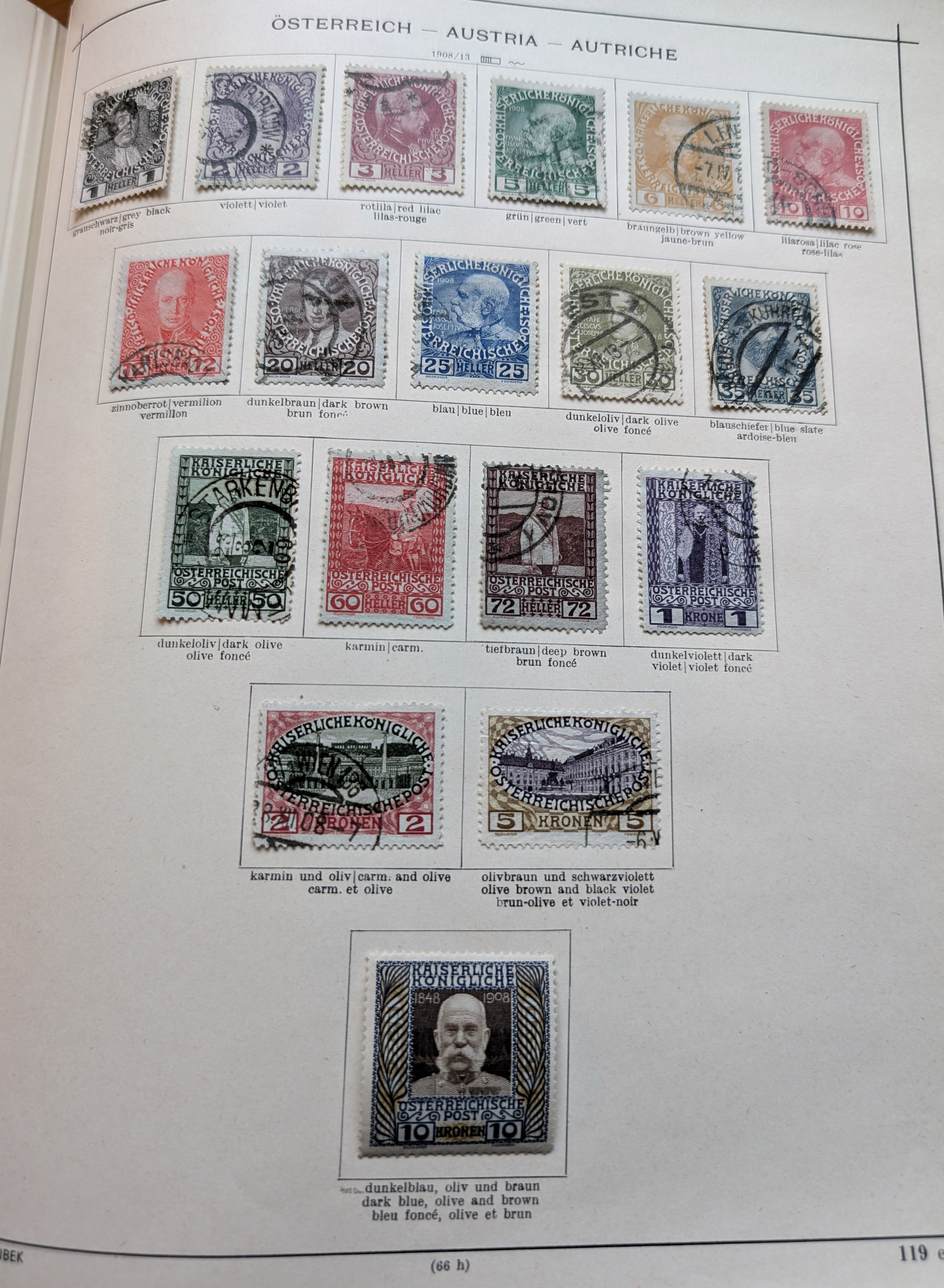 ALL WORLD. Collection ★/⊙ 1840–1930s. NOTE: See special terms below. The heritage of lifelong collecting from three previous owners. The twelve thick Shaubek albums are filled with nice items from 1840 to 1930 and some areas to 1940. Sweden includes an unrepaired 3sk bco and is complete in this album except for Värnamo 55 and 80 öre. Other Nordic countries are very well filled missing only the most expensive stamps. Europe is well filled with many better stamps especially France is comprehensive. Good section of USA and Canada, some nice China and Japan. French and Portuguese colonies are well represented, British colonies a bit less. South America is extensive with plenty of extra material and scarcer stamps. The albums are fresh in general except for some small notes, one album have the spine repaired. Qualtiy is mixed with some faults noted, mostly fine or better. This is a solid collection with great potential for expansion. Please see a selection of scans at www.philea.se. (More than 50000 stamps, all countries are apparently represented). Three previous owners: One norwegian and two wellknown swedish collectors. Terms : 1. The owner wants the collection to be bought by somebody that will keep the collection either intact or will continue to collect in it, not break it down and/or sell all or parts of it. Therefore a penalty of SEK 100000 will have to be paid by the buyer to the owner if this happens within five years of the buying date. Also this means that the owner may (through AB Philea) reject bids from prospective buyers. 2. A purchase agreement (document) between the owner, AB Philea and the buyer will be set up at the time of purchase that will include the term (1). The collection has to be paid for in full before or at the same time as it is handed over to the buyer. 3. The collection is viewable only in the owners home, slightly North of central Stockholm. 4. Prospective buyers should inform AB Philea of their interest to view the collection in good time before the auction. 5. AB Philea will inform the owner of prospective buyers and together they will decide who will be admitted for viewing and in what order. 6. As a consequence of (5). AB Philea (and indirectly the owner) reserves the right to deny viewing – or in case of admitting viewing decide the viewing order between prospective buyers – without having to give any reasons or arguments about the decision. Mostly fine quality. Approx. 25 kg.