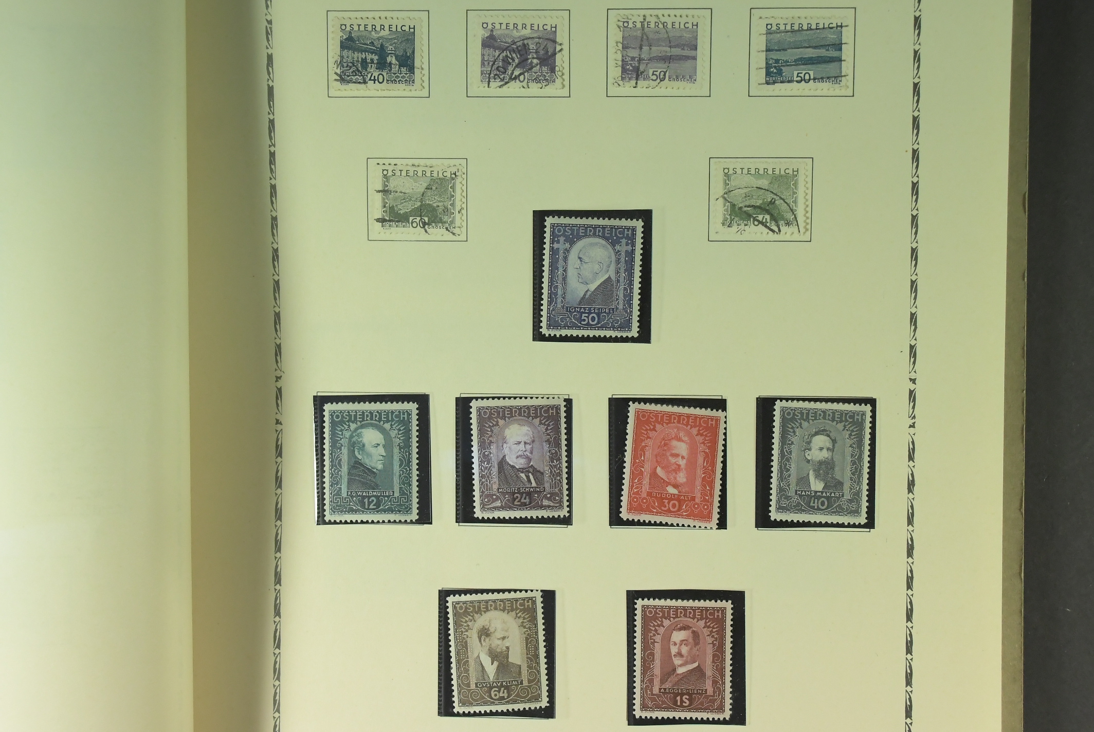 Austria. Collection ★★/★/⊙ 1850–1937 on leaves. Well filled collection in two Letra albums. Mixed mint and used with a few UM ** incl. Rotary set and WIPA others from the 1930s are mostly very light hinged, Good sections back of the book. Please see a selection of scans at www.philea.se. Fine quality. (700)