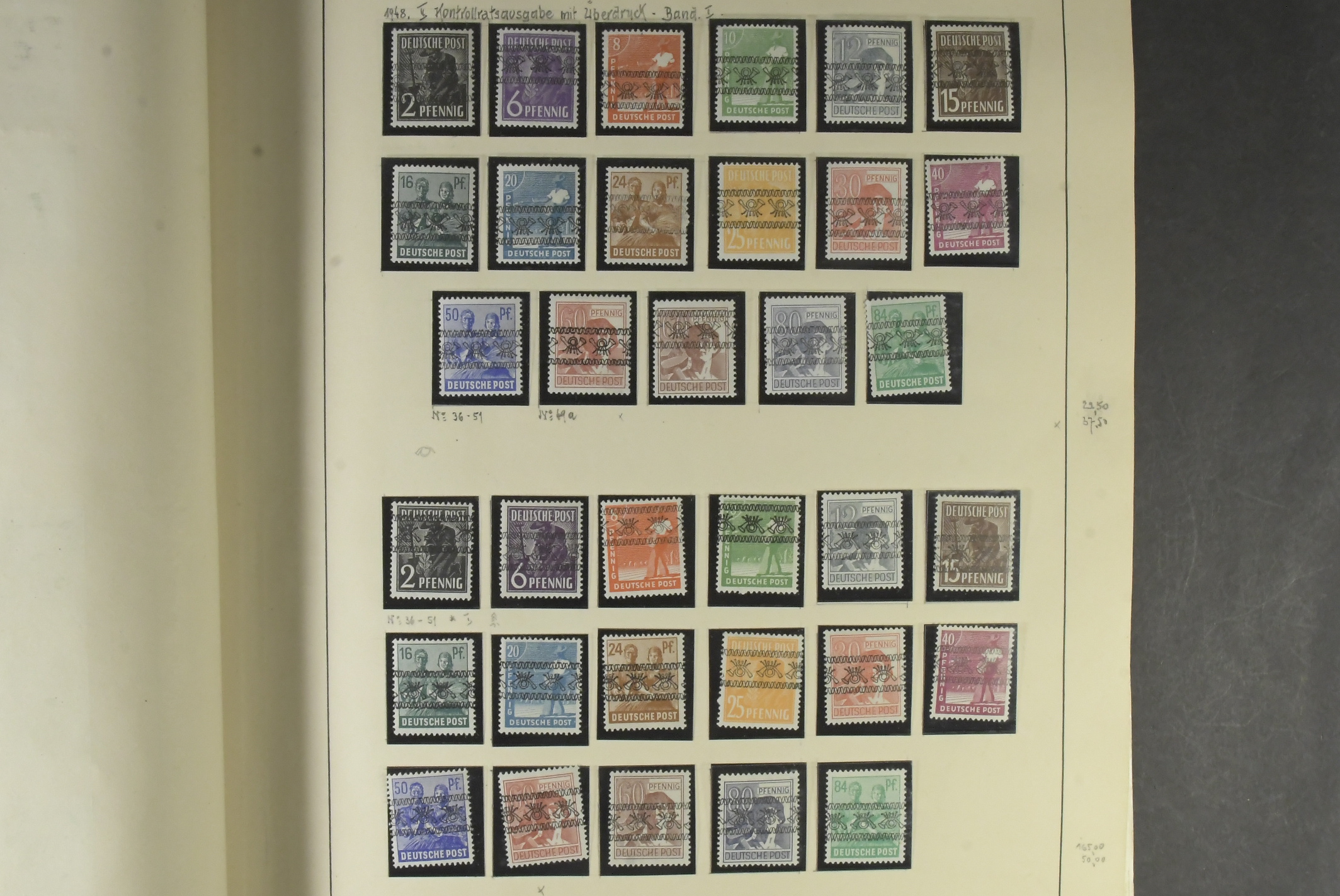 Germany, mixed. Collection ★★/★ 1945–1977 in large album with stamp mounts. Allied occupation, GFR and Berlin in one collection. With better stamps and sets. Mostly **. Starts wiith a nice section of Allied occupation incl net and band inverted overprints mint, Bauten P14*. GFR with complete until 1977 all** except Posthorn and Heuss sets*. Berlin starts with the personalities set 1952 up to 1959 mostly mint after 1960 **. Please see a selection of scans at www.philea.se. Excellent quality. (2000)