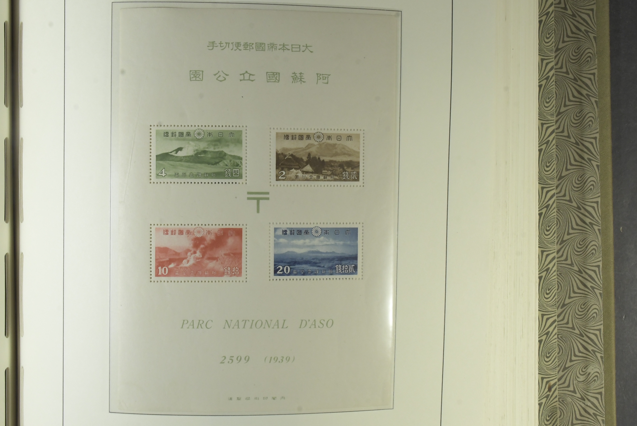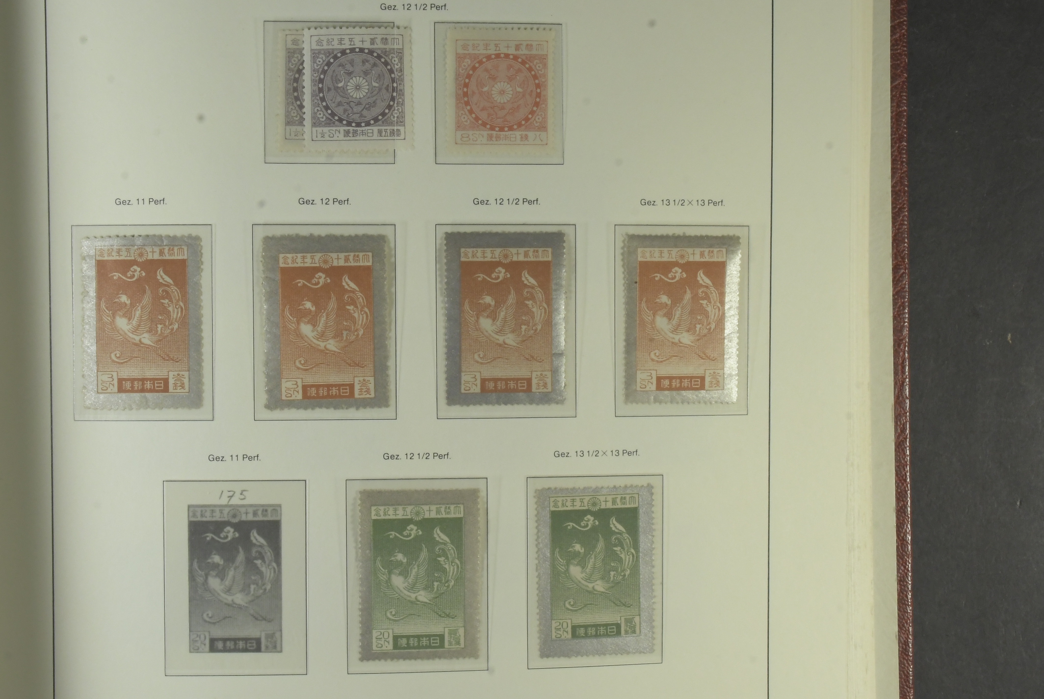 Japan. Collection ★★/★/⊙ 1871–1993 in two albums with Leuchtturm leaves with stamp mounts. early part used with mostly forgeries, from ca 1900 mostly mint. From 1940s very well filled incl. many souvenir sheets with some better National parks etc. From c1960 mostly **. At the end there is a section of Ryukyus. Please see a selection of scans at www.philea.se. Good quality. Approx. 7 kg. (1000–2000)