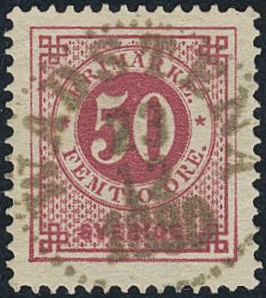 Sweden. Facit 48 used, 50 öre red. EXCELLENT cancellation WADSTENA 23.12.1890.