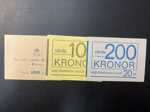 Sweden. Booklets, accumulation 1960–1995 in box. Three boxes filled with many hundred booklets, mostly with lower denomi.. Läs mer Sweden. Booklets, accumulation 1960–1995 in box. Three boxes filled with many hundred booklets, mostly with lower denominations on the stamps (up to 5 SEK per stamp), Total franking value more than 15000 SEK. Excellent quality. Visa mindre