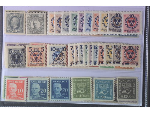 Sweden. Accumulation mostly ★ 1892–1920 on visir leaves. Duplicate stock with Oscar II, Medallion, Landstorm and Air mai.. Läs mer Sweden. Accumulation mostly ★ 1892–1920 on visir leaves. Duplicate stock with Oscar II, Medallion, Landstorm and Air mail overprints 1920. Incl. many shades, watermark varities and much more. Very high catalogue value. Please see a selection of scans at www.philea.se. Somewhat mixed quality. (300+) Visa mindre