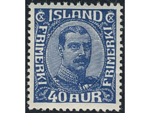 Iceland. Facit 140 ★, 1921 King Christian X 40 aur blue, thin broken lines. SEK 4400 Iceland. Facit 140 ★, 1921 King Christian X 40 aur blue, thin broken lines. SEK 4400 Visa mindre
