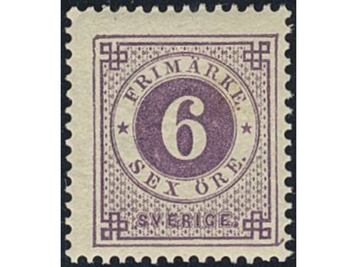 Sweden. Facit 31 ★★, 6 öre violet. Minor climate stains at back side. SEK 4000 Sweden. Facit 31 ★★, 6 öre violet. Minor climate stains at back side. SEK 4000 Visa mindre