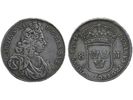 78 Coins, Sweden. Karl XI, SM 66, 8 mark 1694/3. 31.27 g. Stockholm. 1/1+. 14500