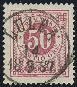 Sweden. Facit 48c used, 50 öre violet-carmine. Superb cancellation LULEÅ 14.9.1887.