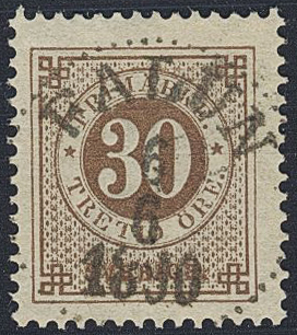 Sweden. Facit 47e used, 30 öre yellowish brown. EXCELLENT cancellation FALUN 6.6.1890.