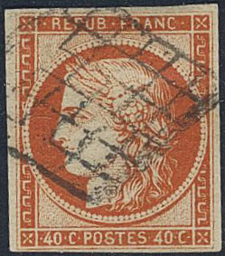 France. Michel 5a used, 1850 Ceres Head 40 c red-orange. EUR 550