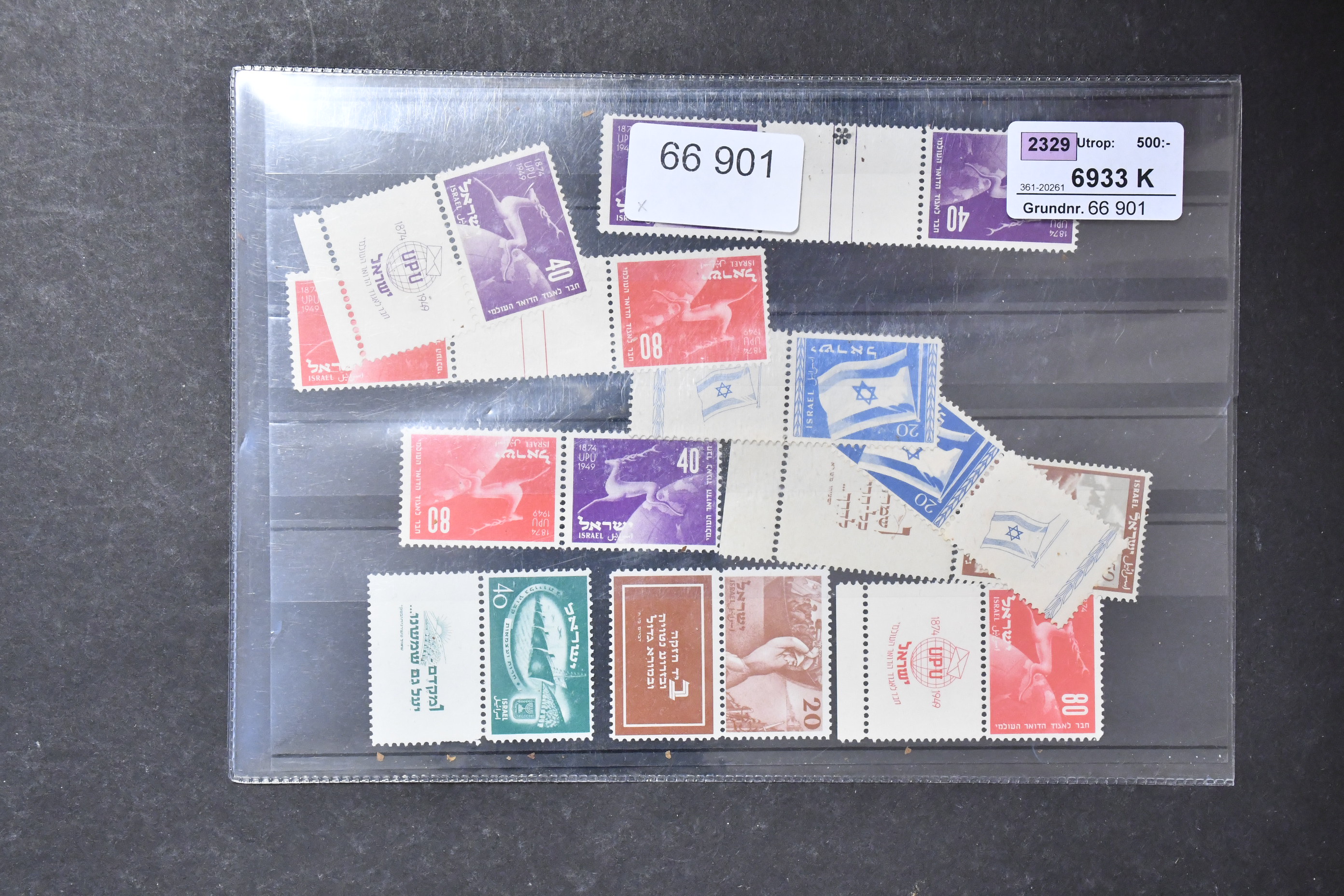 Israel. ★★ 1948–1950. All different, e.g. Mi 15 (full tab), 16 (two diff. sides), 28-29 (full tabs), 28-29KZ, 30-31 (half tabs). Mostly good quality. Mi € 645 (10)