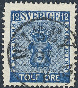 Sweden. Facit 9b2 used, 12 öre dark blue. Superb cancellation WISBY 25.10.1863.