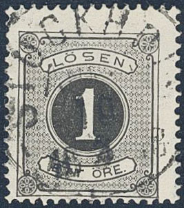 Sweden. Postage due Facit L1 used, 1 öre black, perf 14. EXCELLENT cancellation STOCKHOLM 10.3.1878.