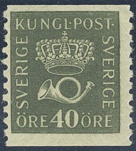 Sweden. Facit 159 ★, 40 öre dark olive-green vertical perf 9¾ type II on soft paper (B). SEK 3000