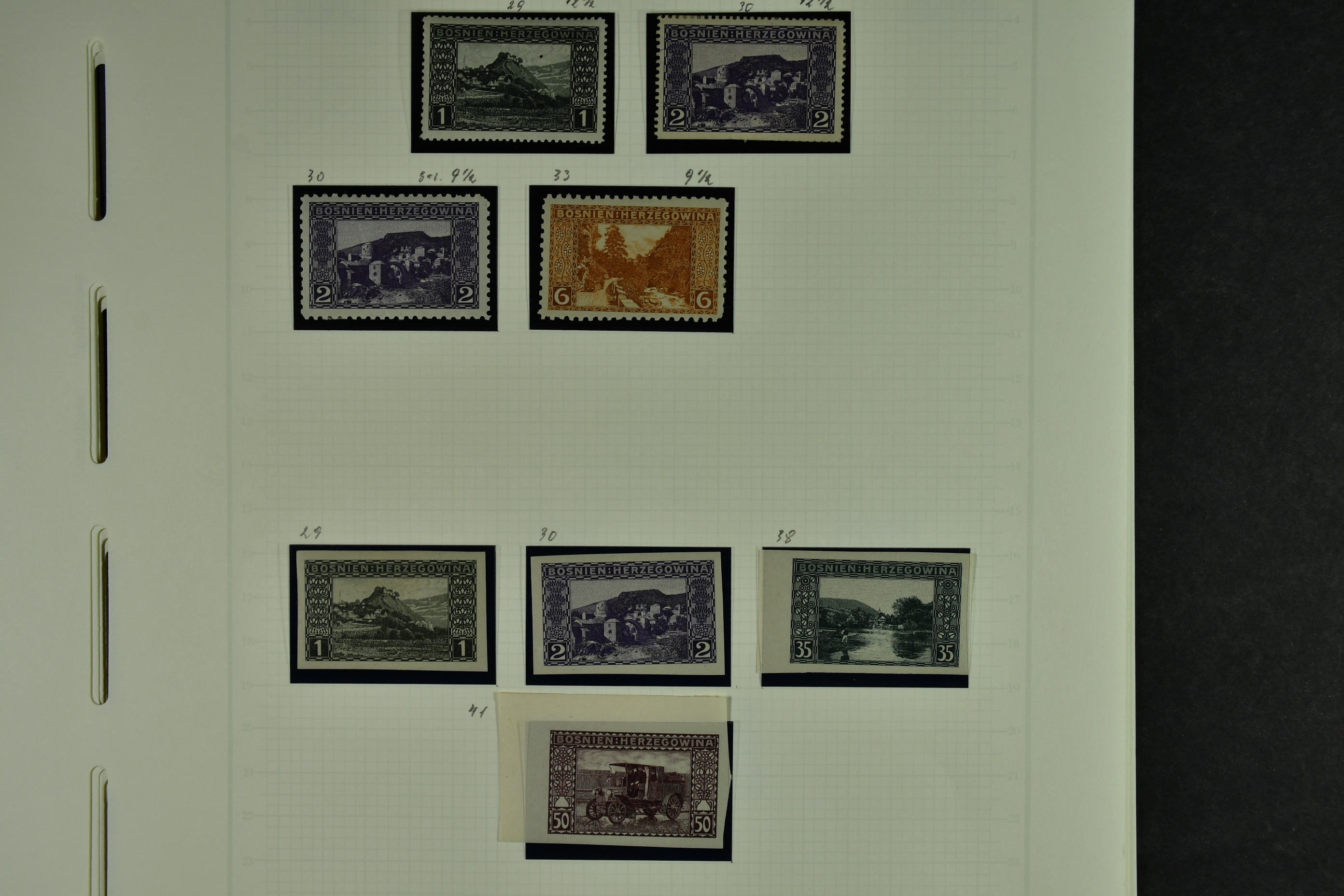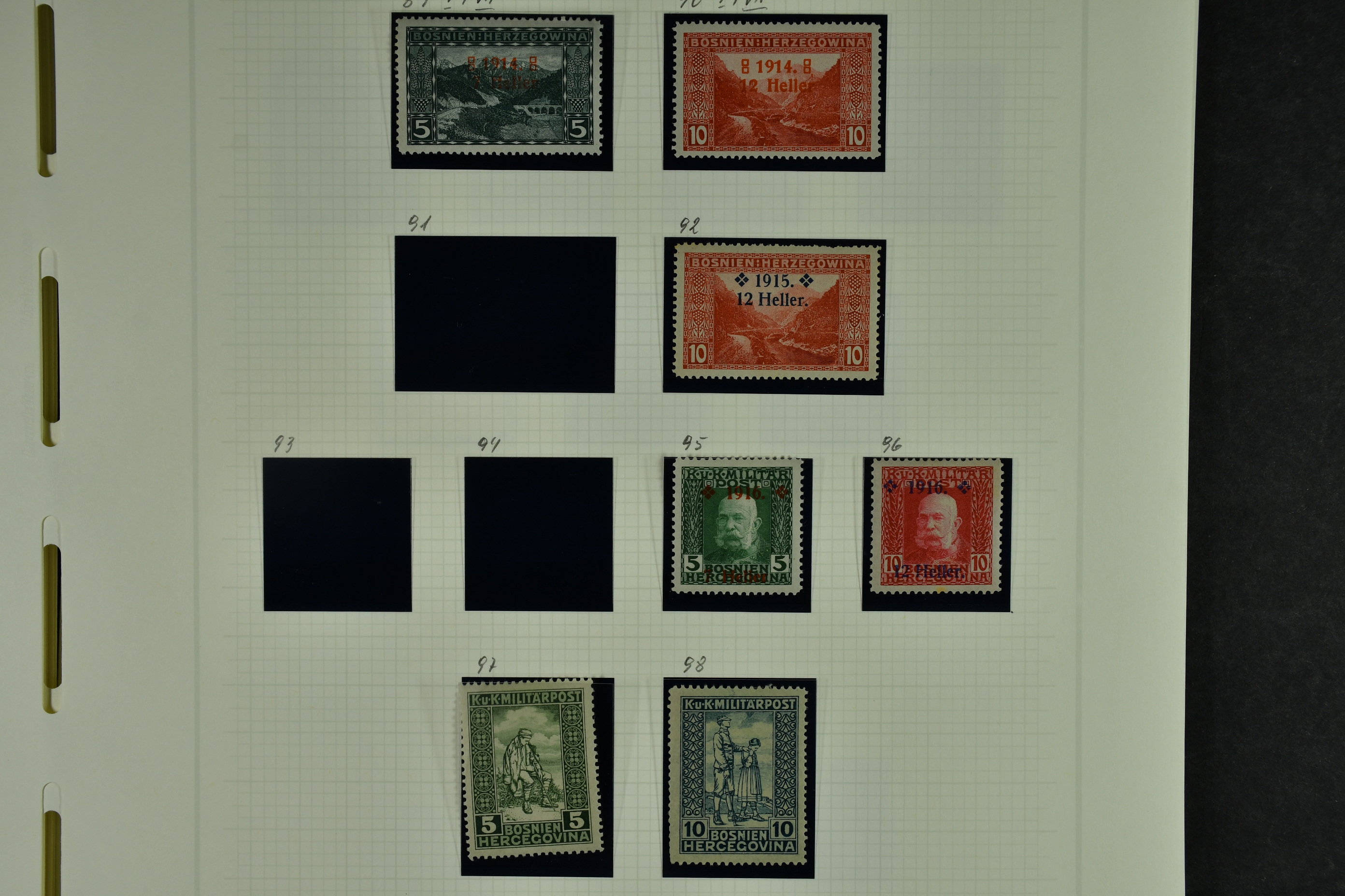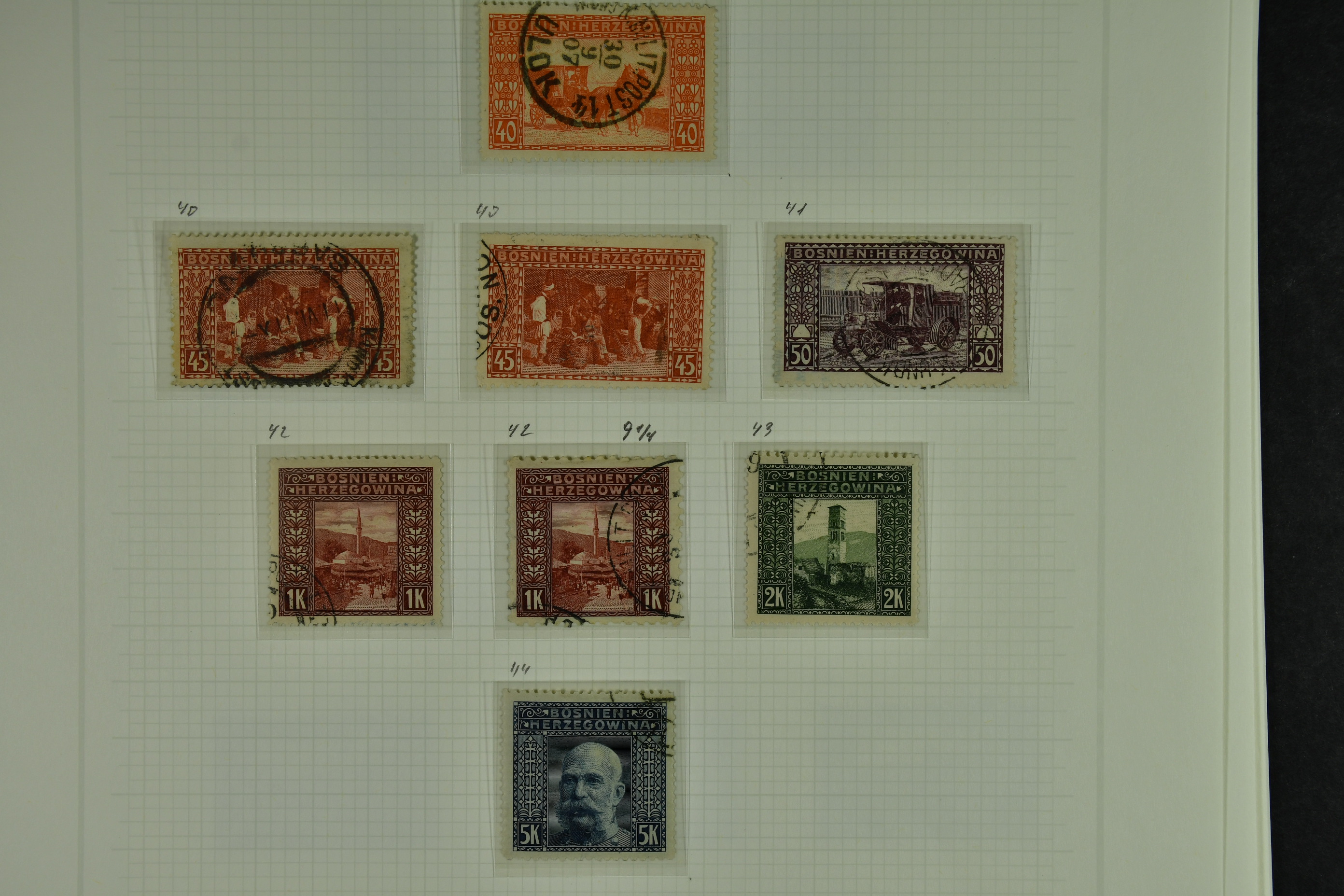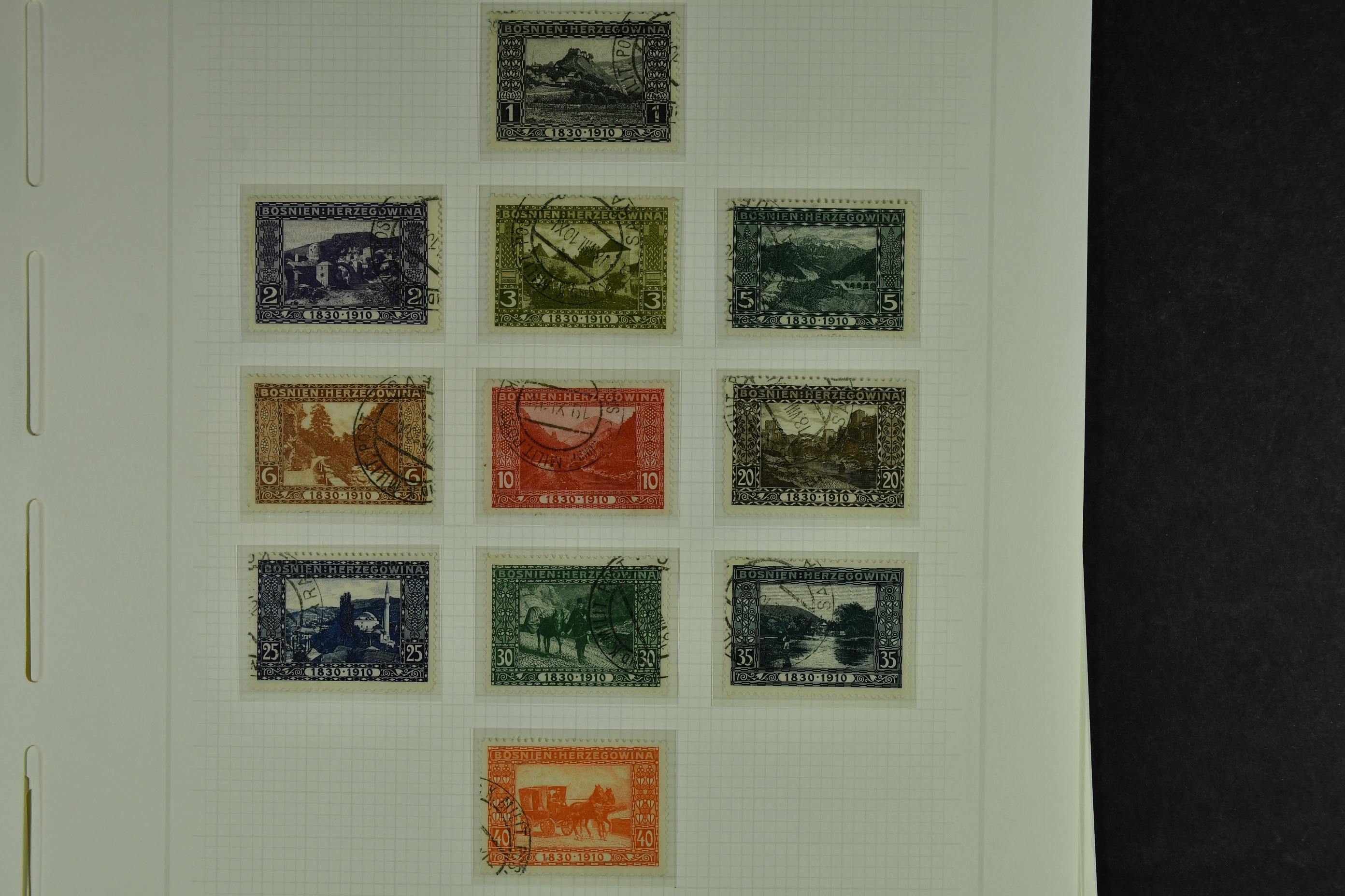 Bosnia and Herzegovina. Collection ★★/★/⊙ 1879–1916 on leaves. Clean collection with better e.g. many of the earliest stamps, perforation types, etc. The entire lot is presented at www.philea.se. Fine quality. (250–300)