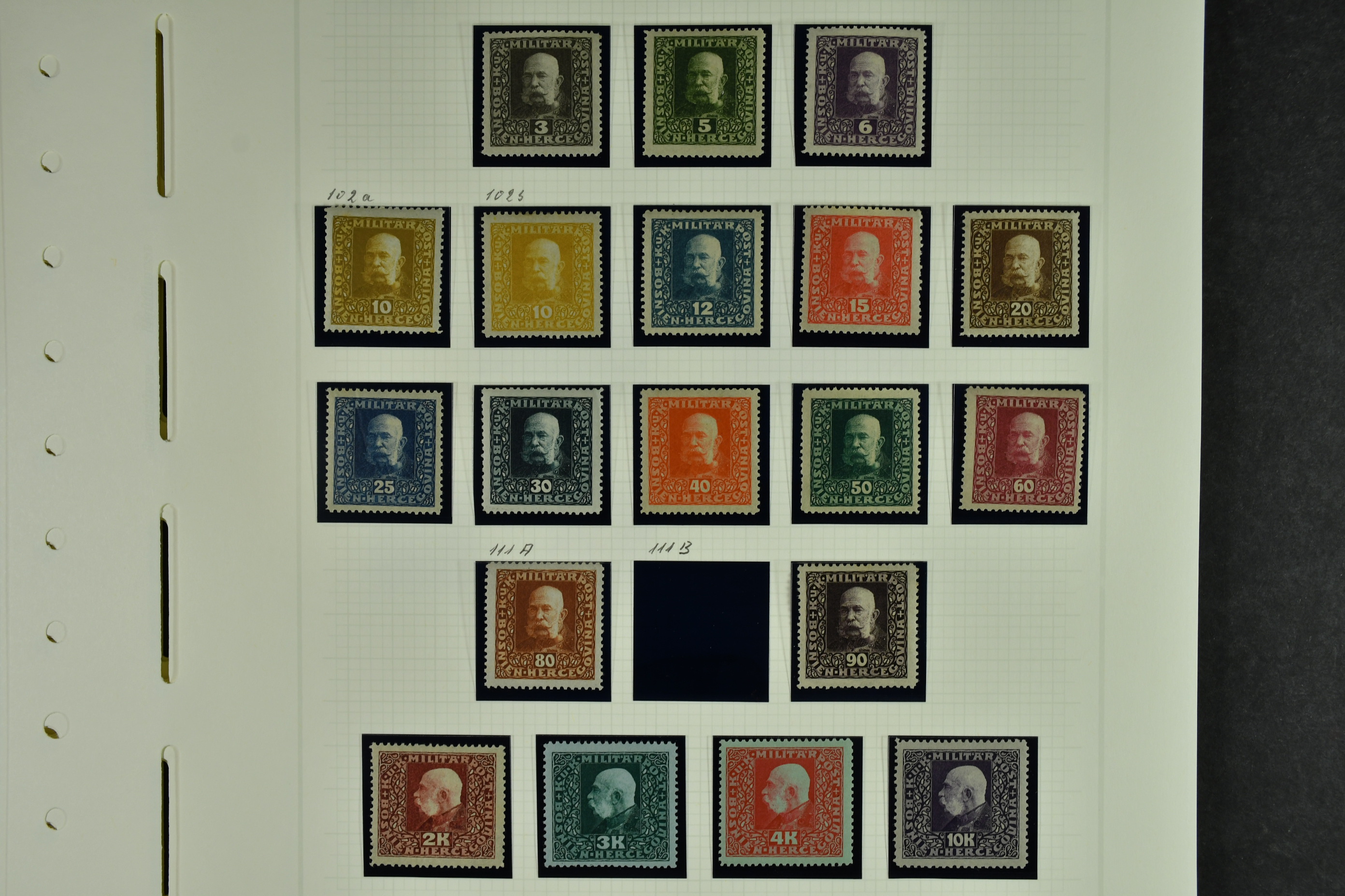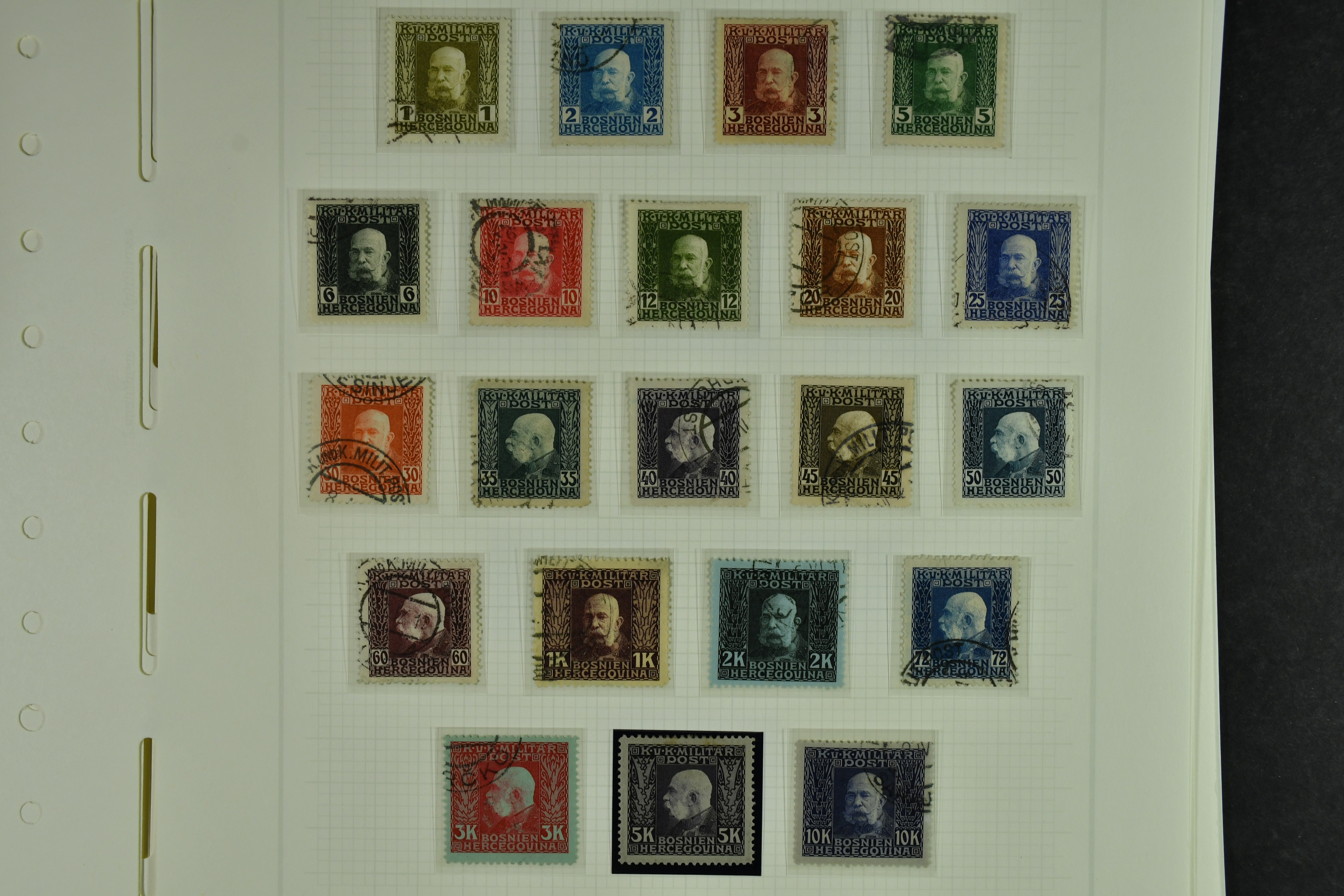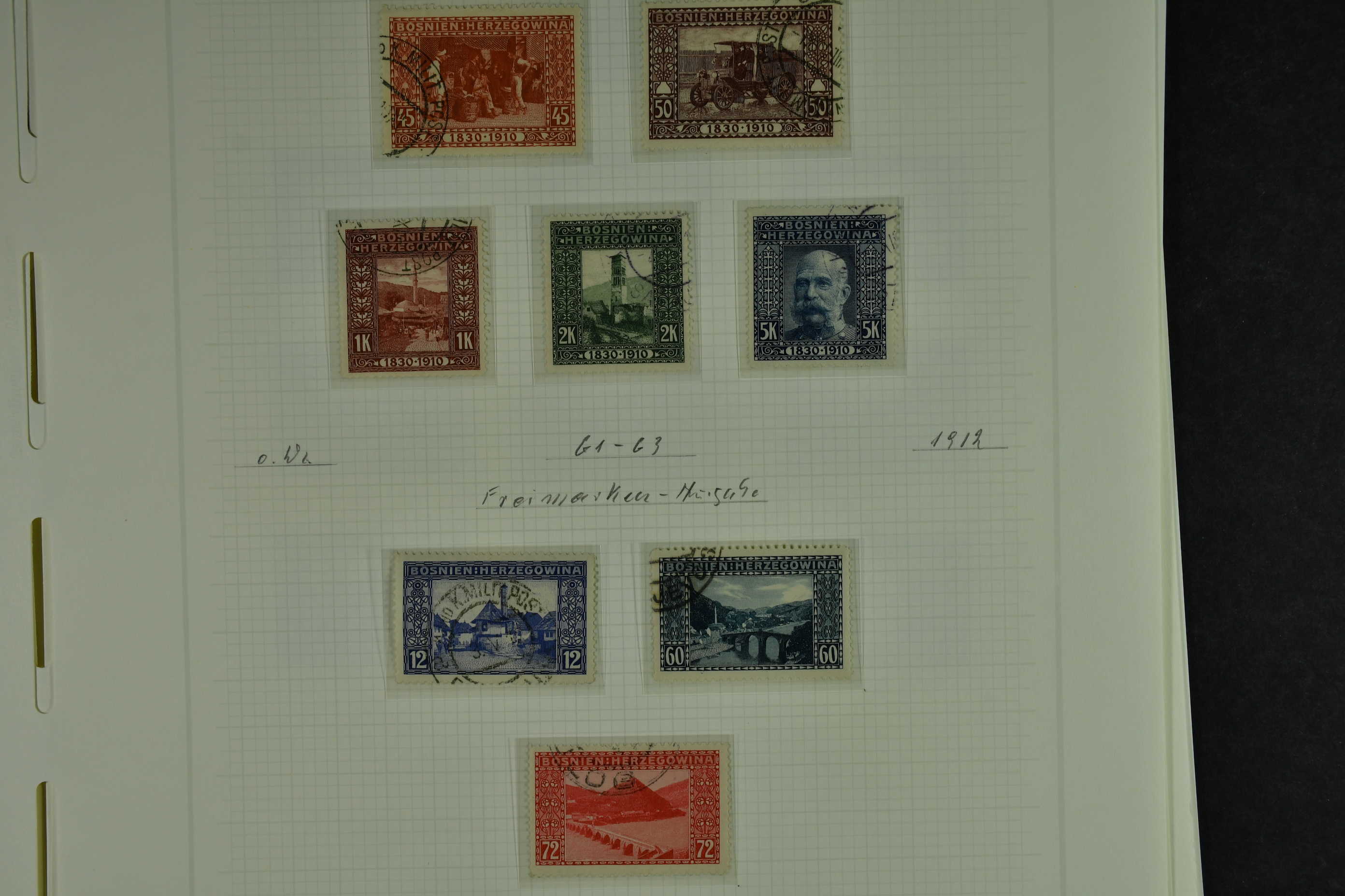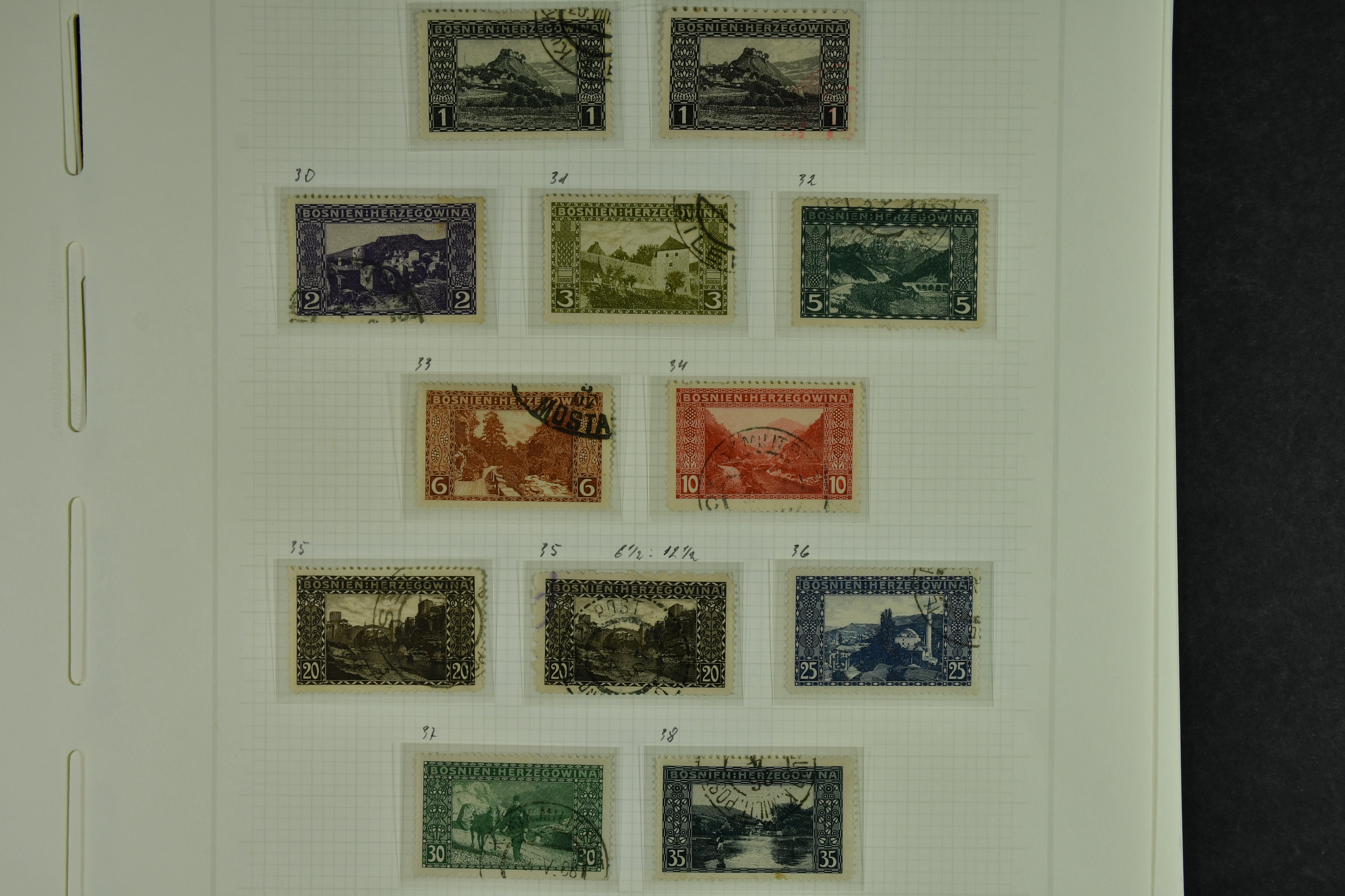 Bosnia and Herzegovina. Collection ★★/★/⊙ 1879–1916 on leaves. Clean collection with better e.g. many of the earliest stamps, perforation types, etc. The entire lot is presented at www.philea.se. Fine quality. (250–300)