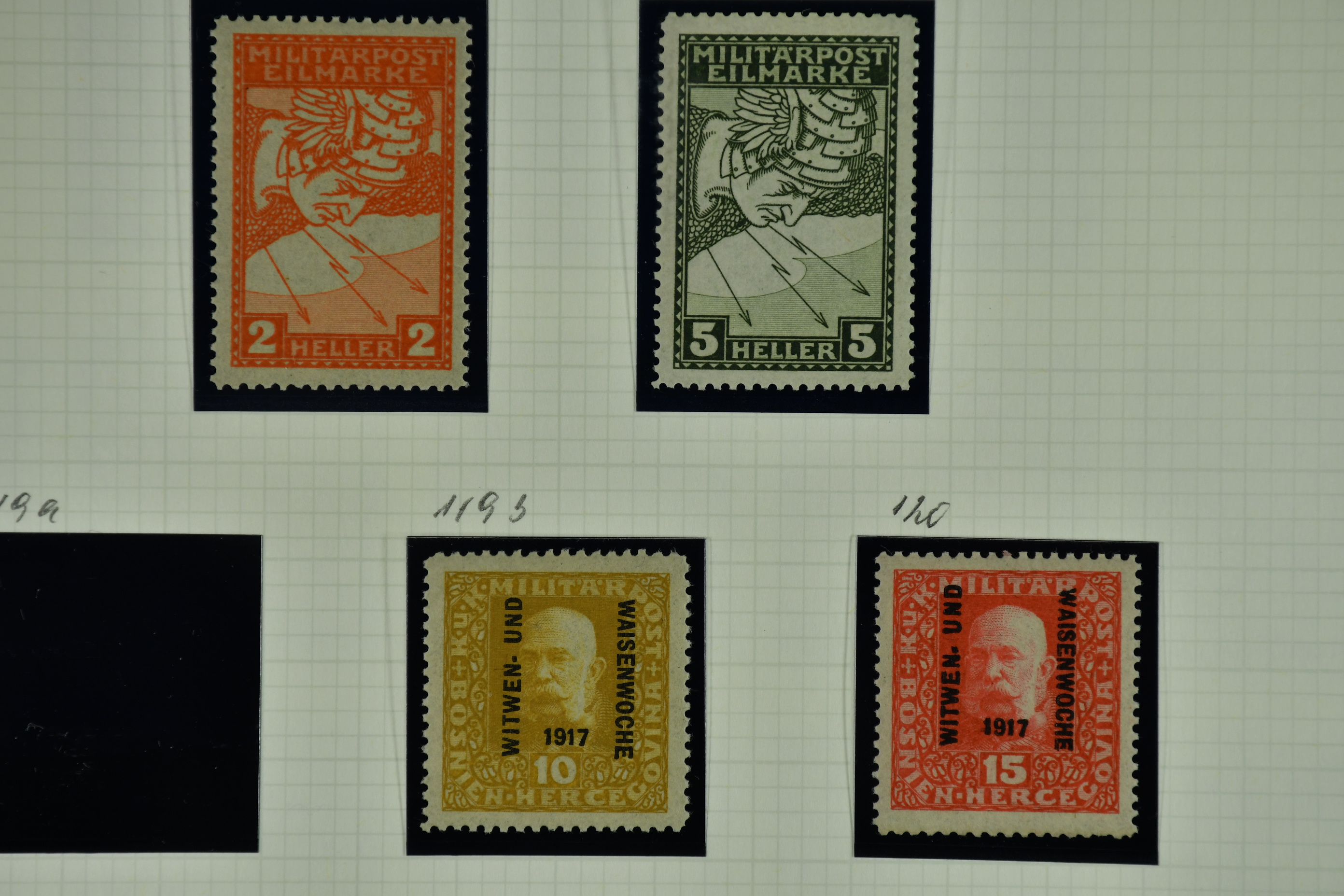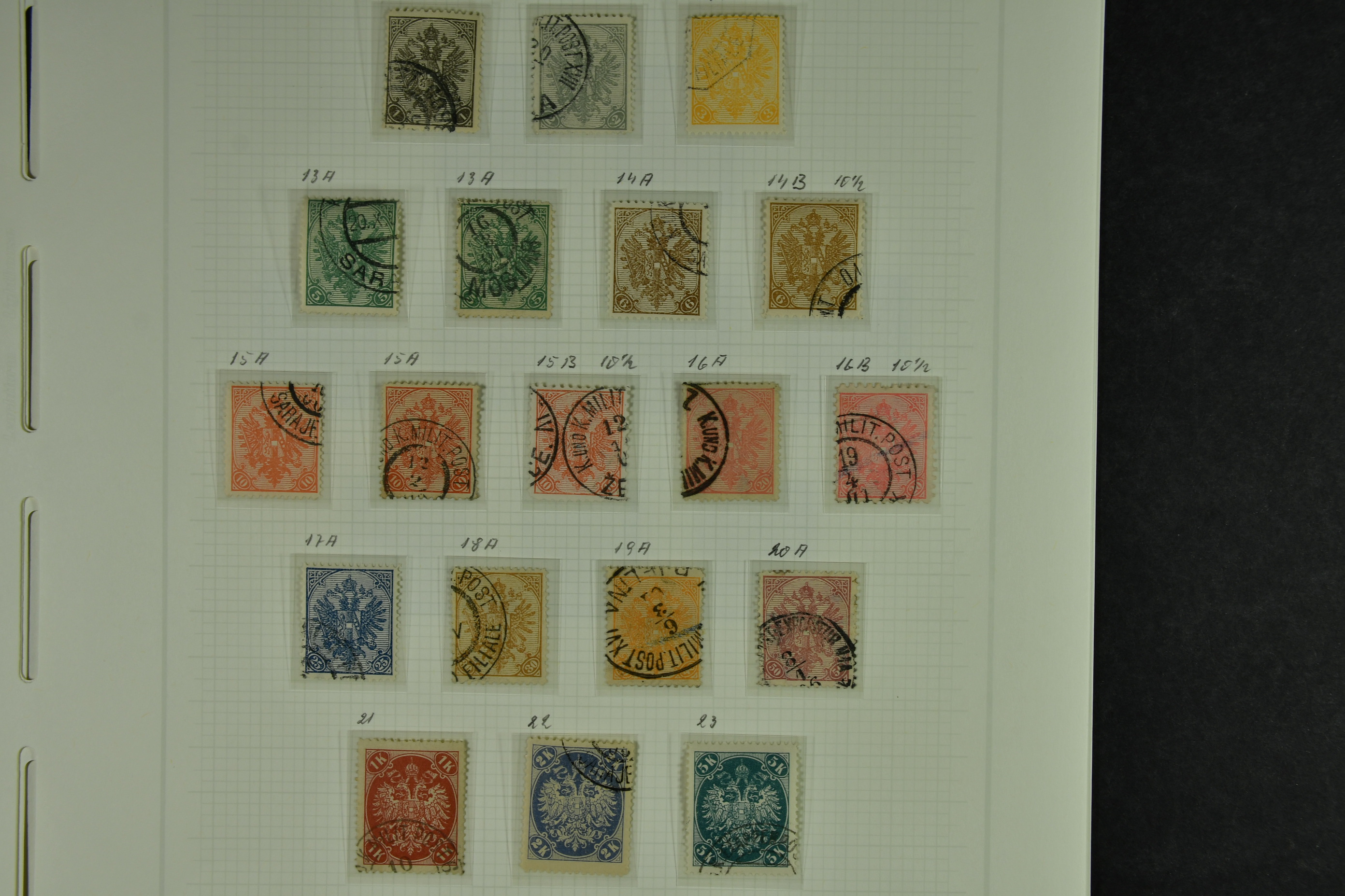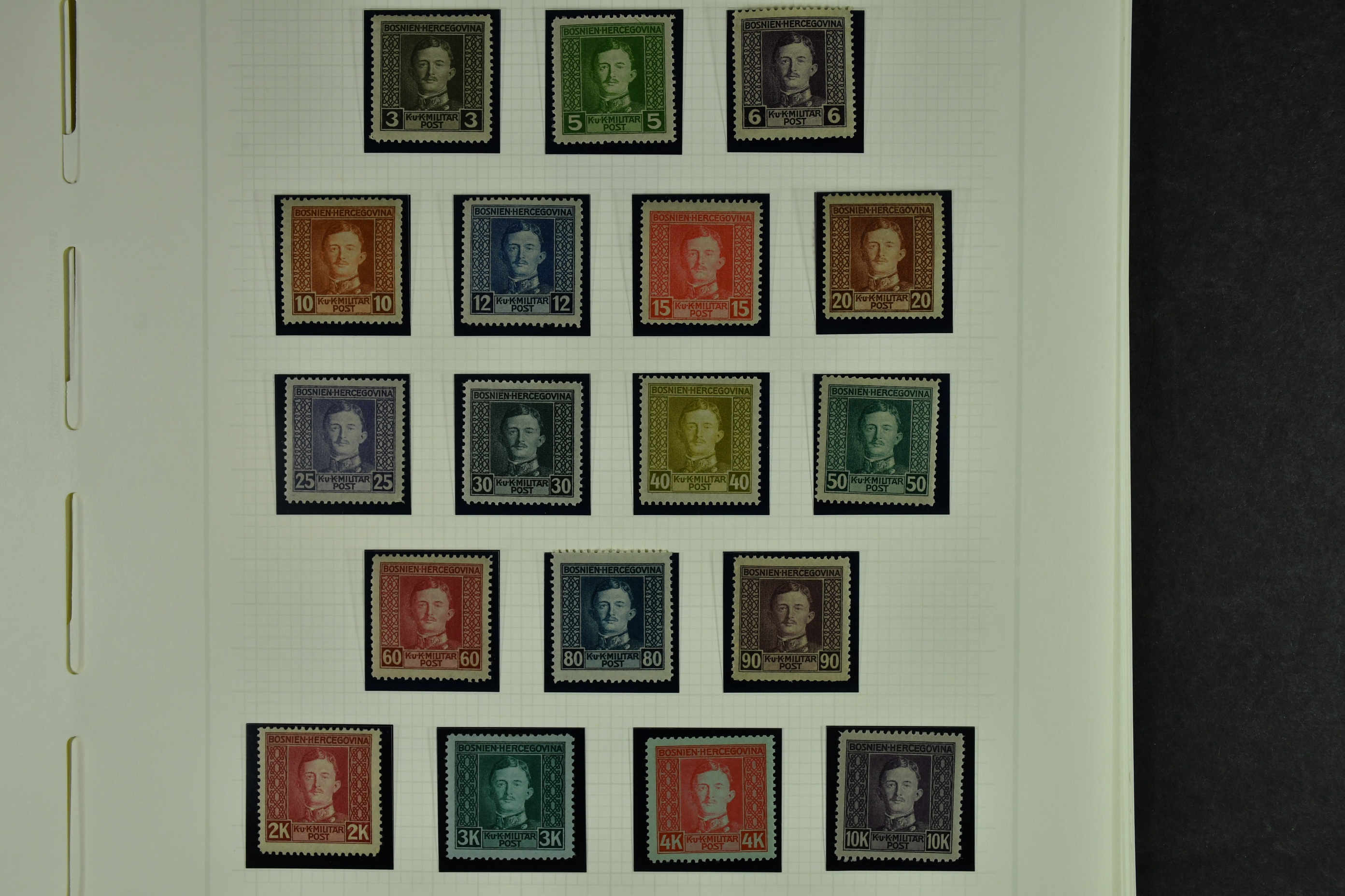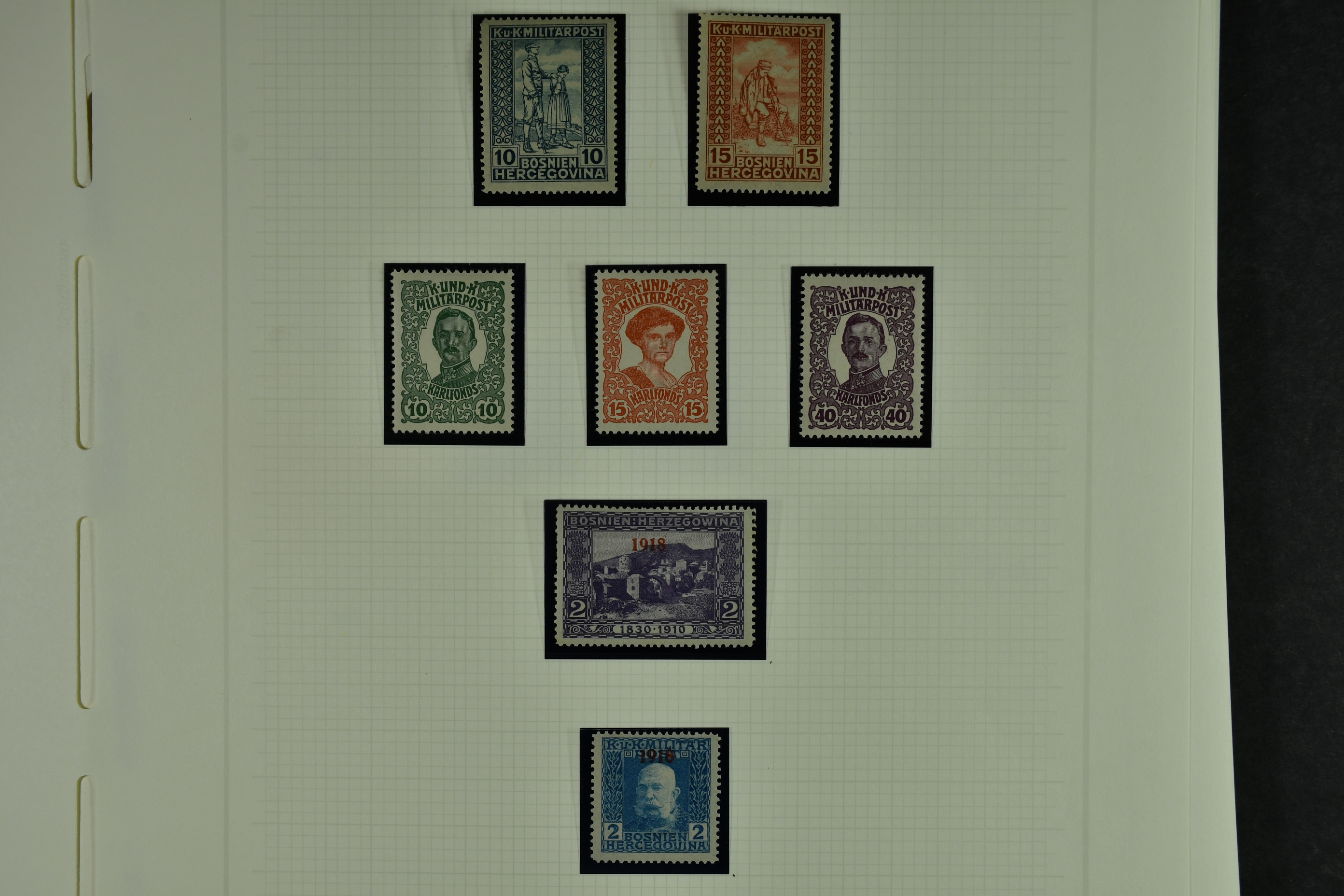 Bosnia and Herzegovina. Collection ★★/★/⊙ 1879–1916 on leaves. Clean collection with better e.g. many of the earliest stamps, perforation types, etc. The entire lot is presented at www.philea.se. Fine quality. (250–300)