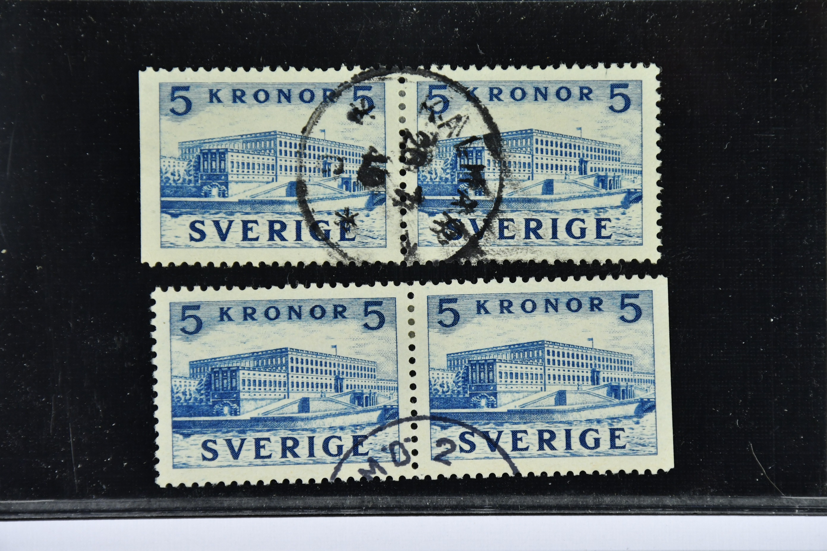 Sweden. Facit 332BC/CB used, 1941 The Royal Castle 5 Kr blue, pair 3+4 and 4+3. SEK 3200