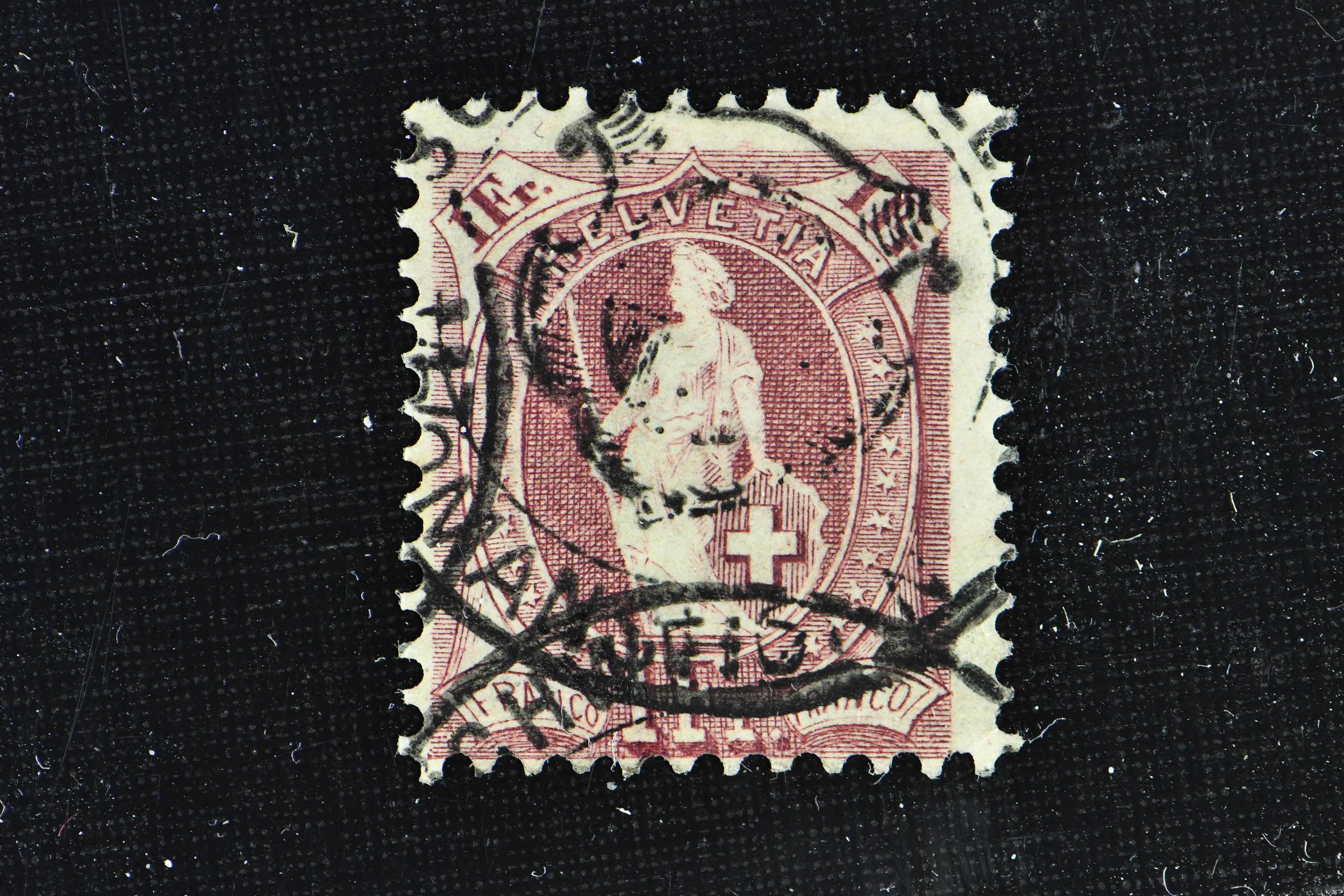 Switzerland. Michel 63D used, 1882 Standing Helvetia 1 Fr lilac perf 11½ × 12. EUR 300