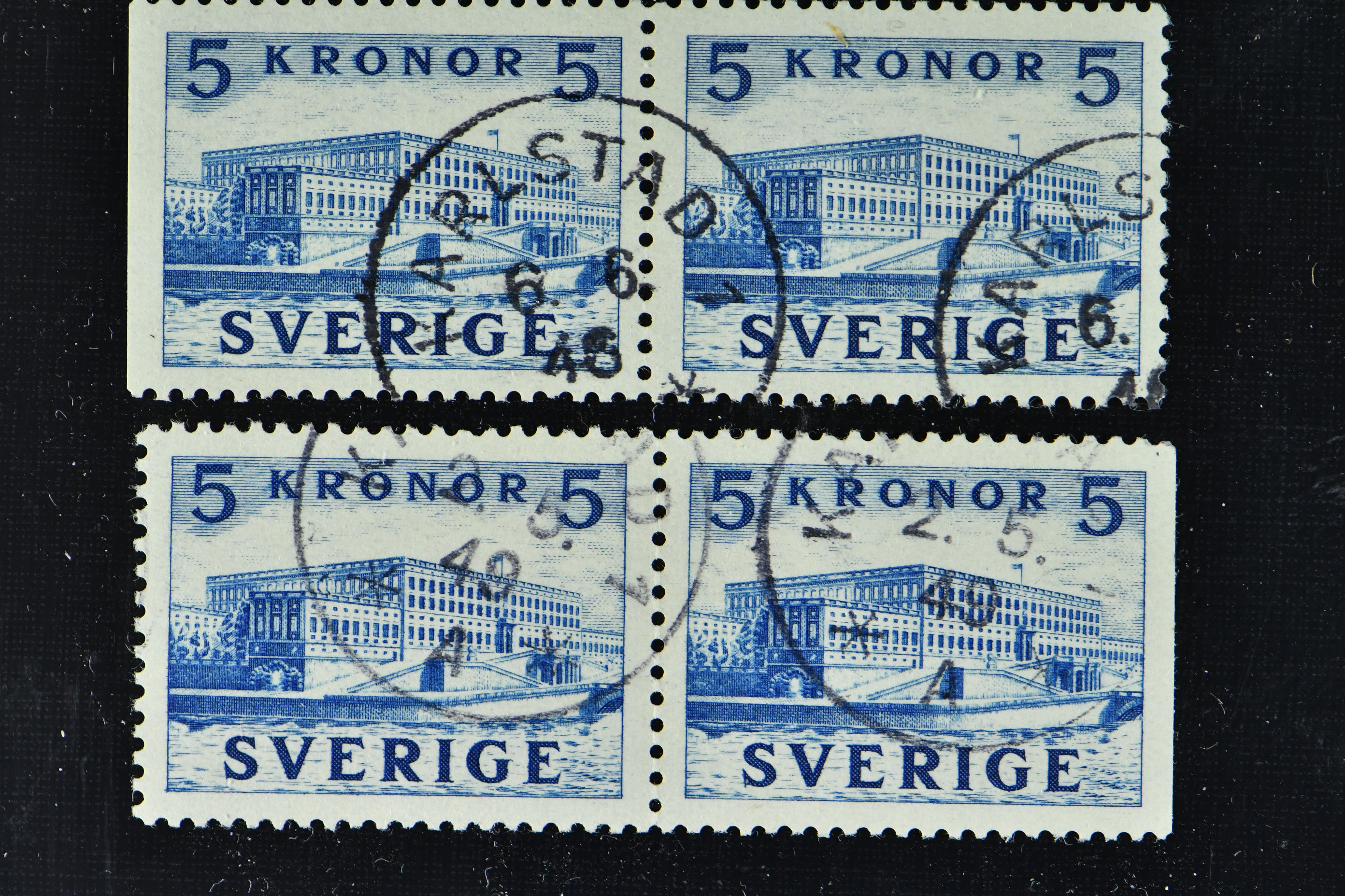 Sweden. Facit 332BC/CB used, 1941 The Royal Castle 5 Kr blue. Two superb centered pairs. SEK 3200