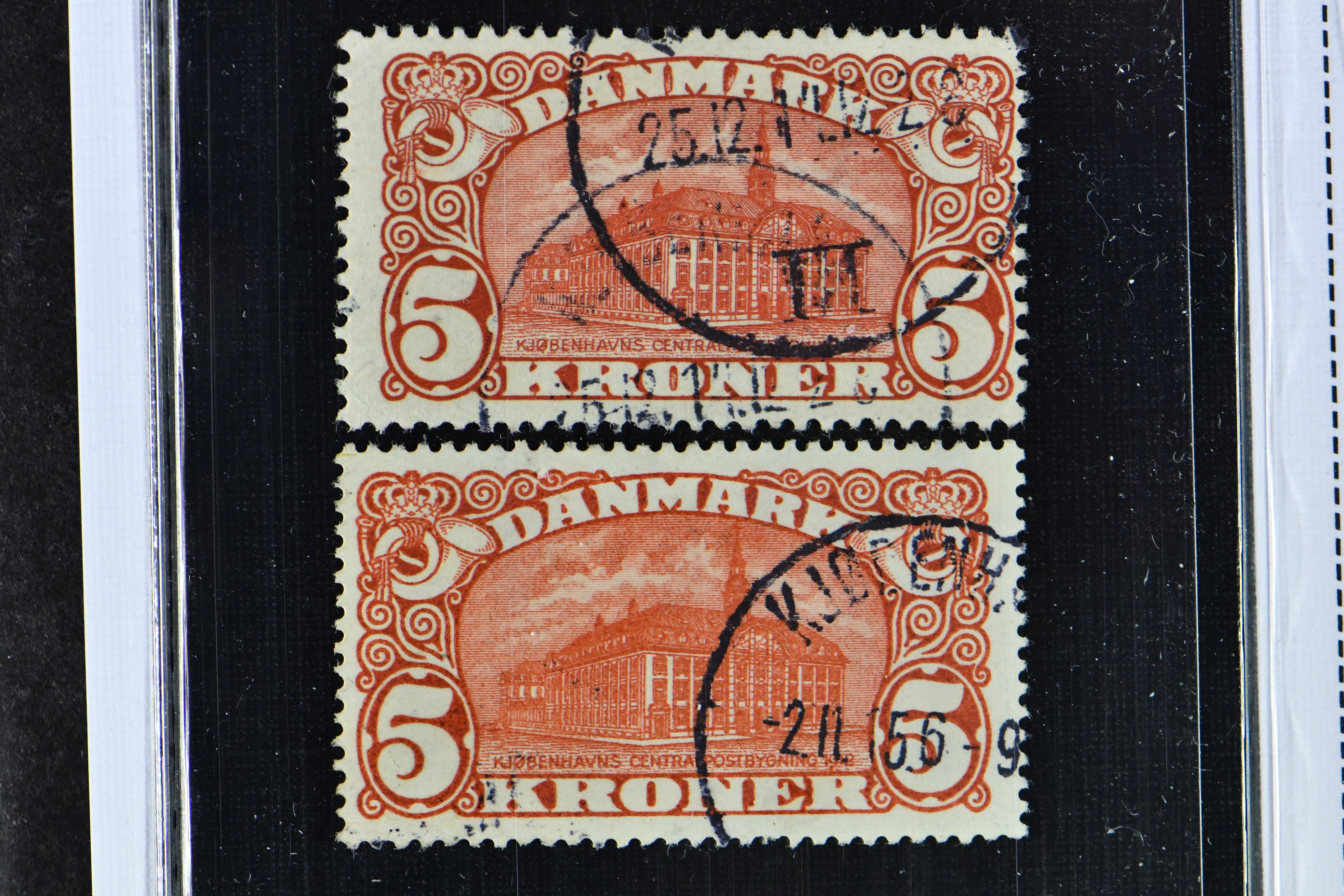Denmark. Facit 120–21 used, 1912 GPO Copenhagen 5 Kr brown-red, watermark crown + cross (2). SEK 2800