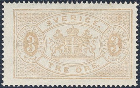 Sweden. Official Facit Tj1b ★, 3 öre yellowish orange-brown, perf 14. Very fine and fresh copy.