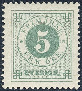 Sweden. Facit 30i ★, 5 öre bluish dark-green on calendered paper. Very fine–superb. SEK 1200