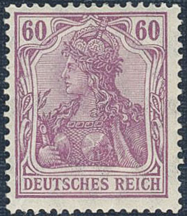 Germany, Reich. Michel 92 I ★, 1911 Germania peace print 60 pfg lilac wmk 1. EUR 250